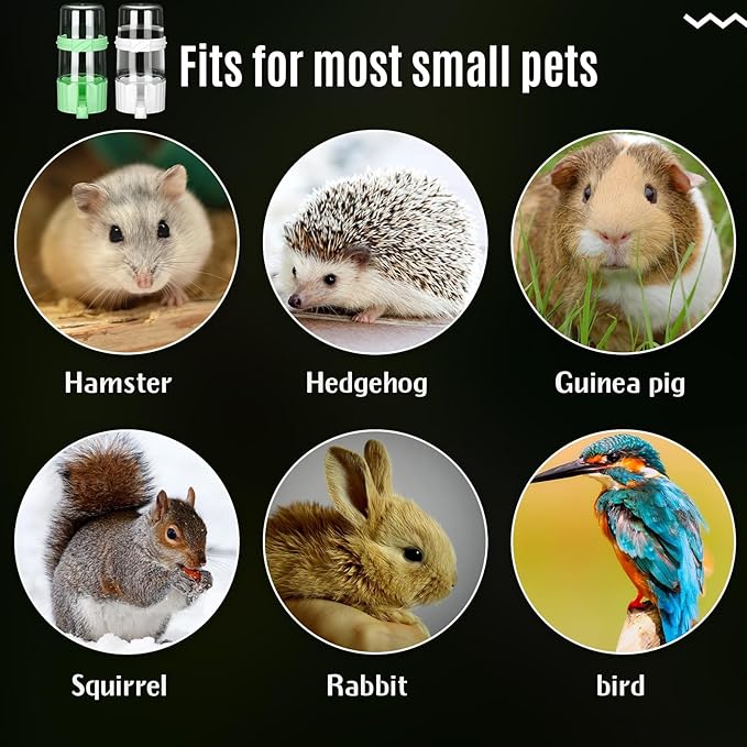 Weewooday 4 Pieces Automatic Bird Feeder Cage Water Dispenser Bird Water Feeder Hamster Cage Waterer Accessory Drinker Bottle for Hamster Parrot (Cute Style,Green, White,245 ml)