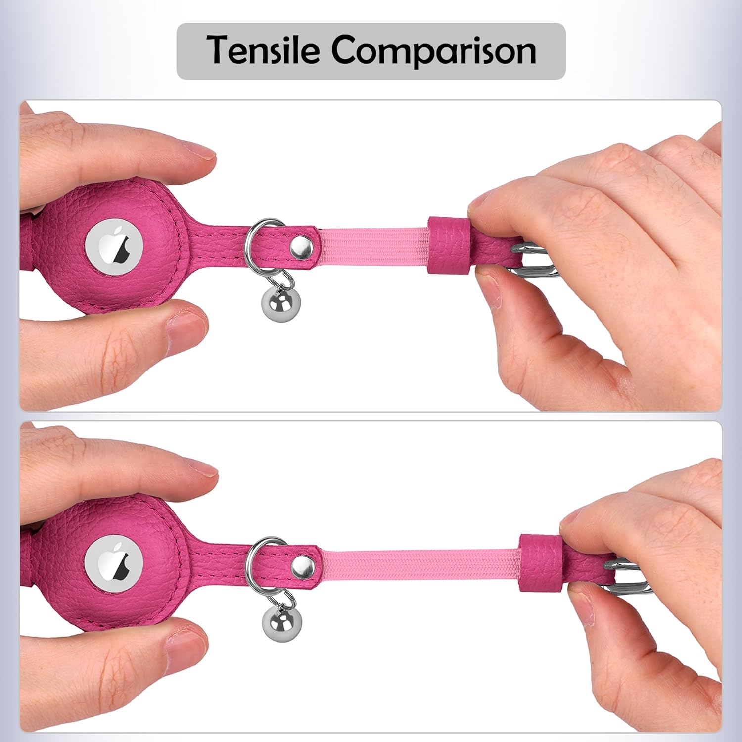 OOPSDOGGY Cat Collar for AirTag Holder, Leather Kitten Collars with Elastic Strap & Bell, Non Breakaway Adjustable Small Pet Collars for Indoor & Outdoor for Boy, Girl (Pink)