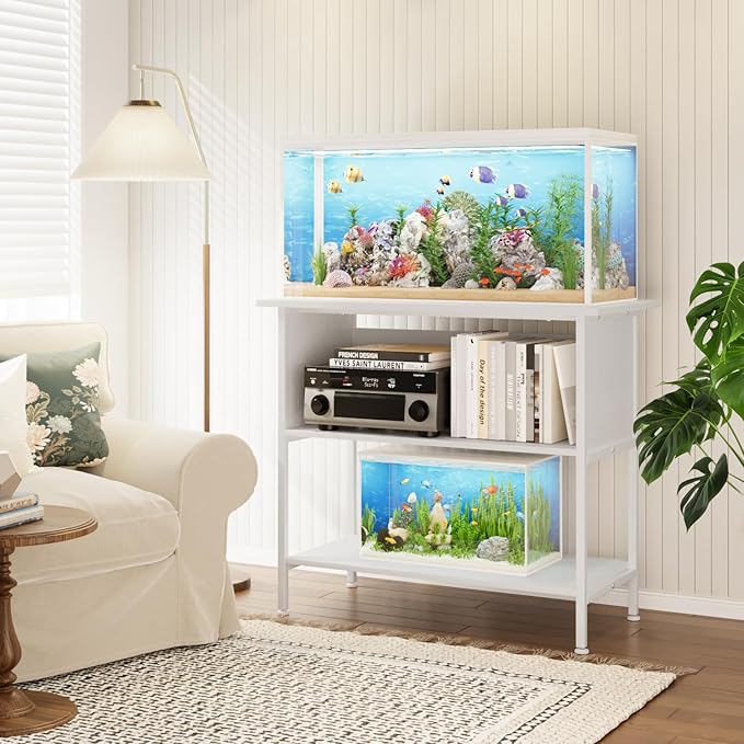 - 【Versatile Aquarium Stand for Reptile Terrarium Use】Ideal as a stand for turtle or reptile habitats; With a modern look in Black, White, and Tiger Eye Brown, it also works as a stylish shelf for plants, books, and more, blending into any room