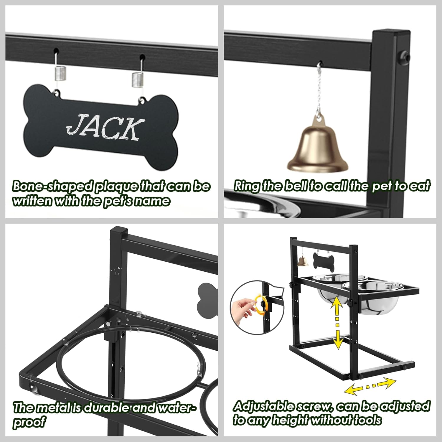 - STURDY ALL IRON: The dog bowl stand is made of industrial grade iron which is more durable compared to plastic bowl stands. The Dog Bowl Holder has a bottom that adjusts backward so that it does not tip over while eating