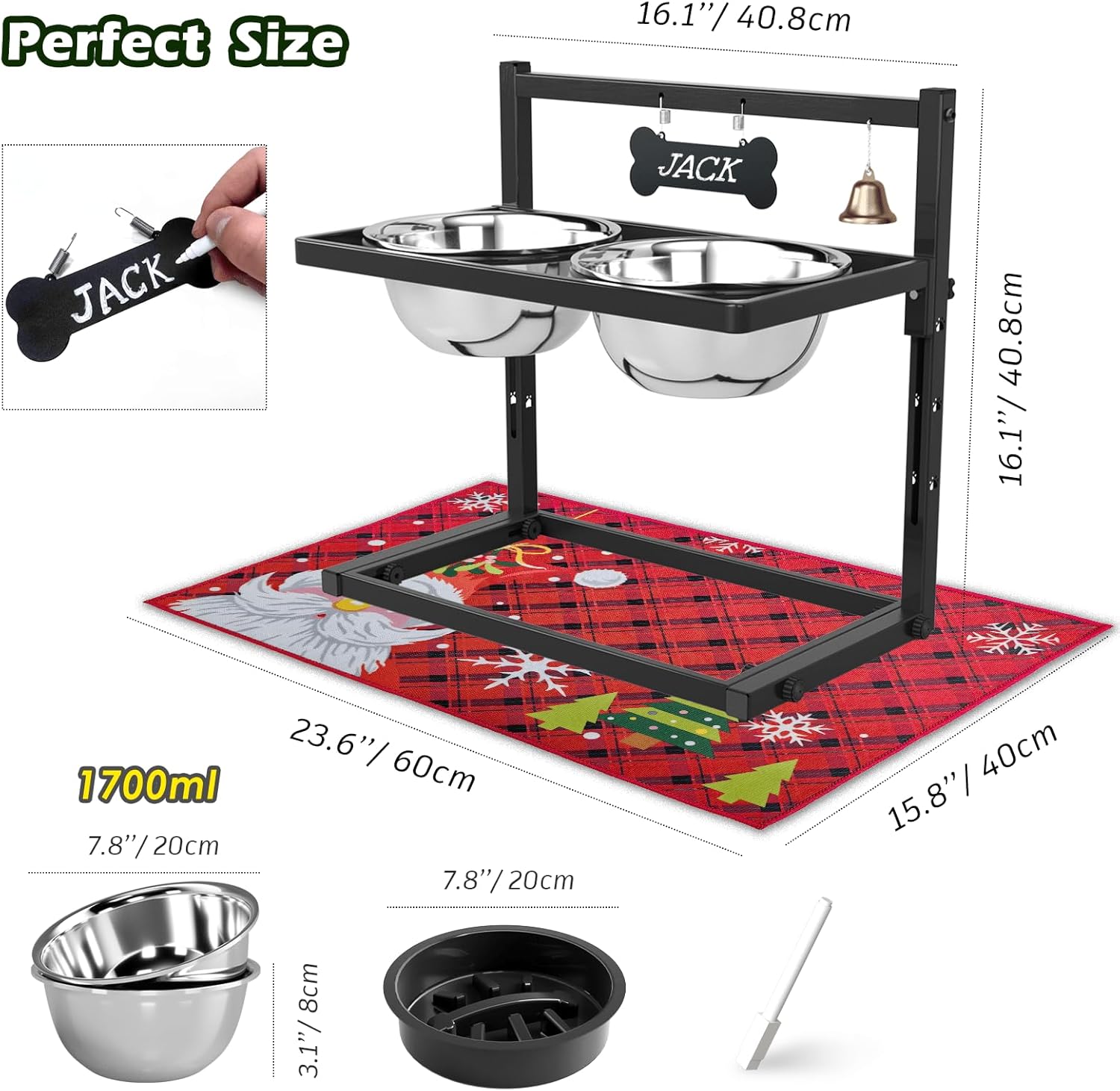 SHAINFUN Christmas Elevated Slow Feeder Dog Bowls with Mat for Large Dogs, Adjustable Height, Tall Raised Dog Food Water Bowl Stand Gift for Dogs