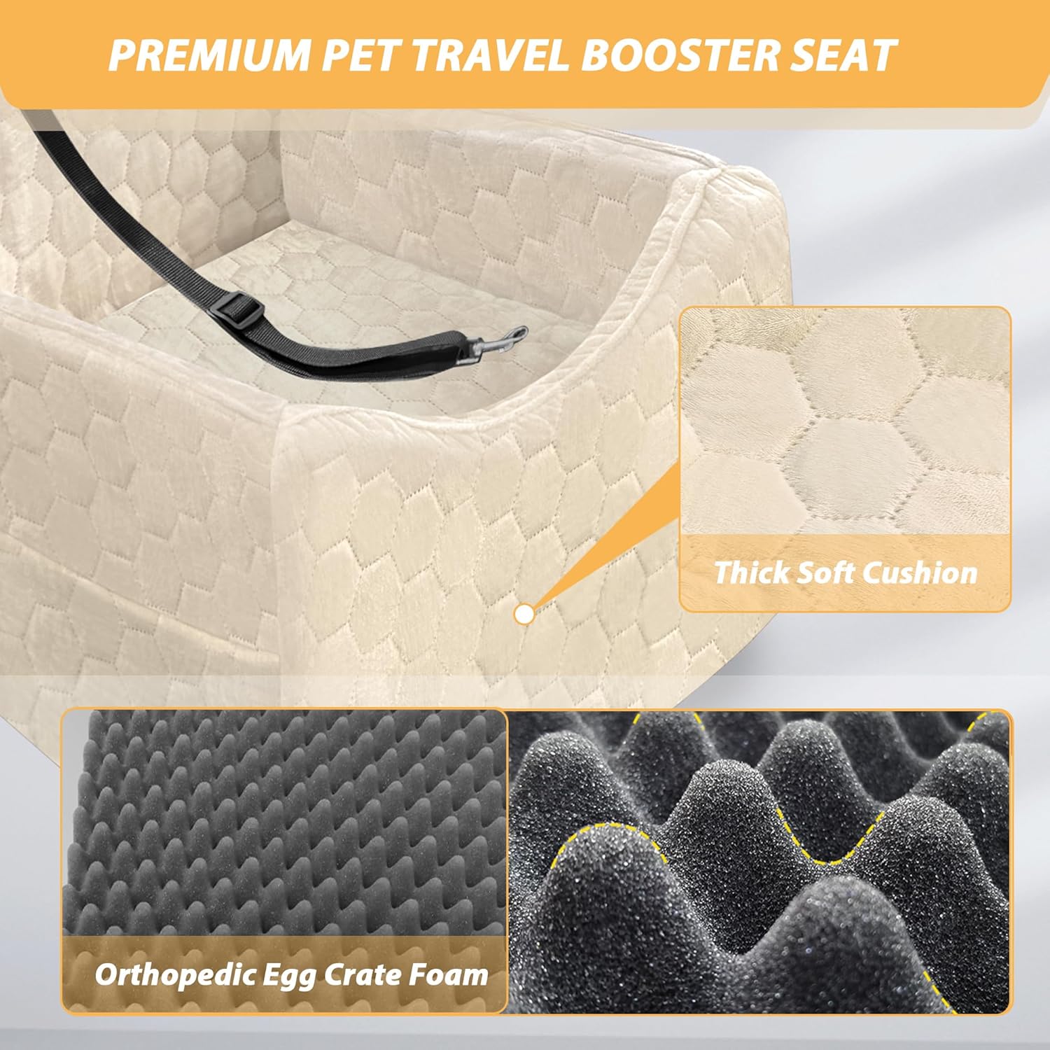 Dog Car Seat for Small/Medium Dogs, Memory Foam Dog Booster Seat, Travel Safety Per Car Seat with Washable Removable Cover, Storage Pockets for Dogs up to 35 lbs (White, Small)