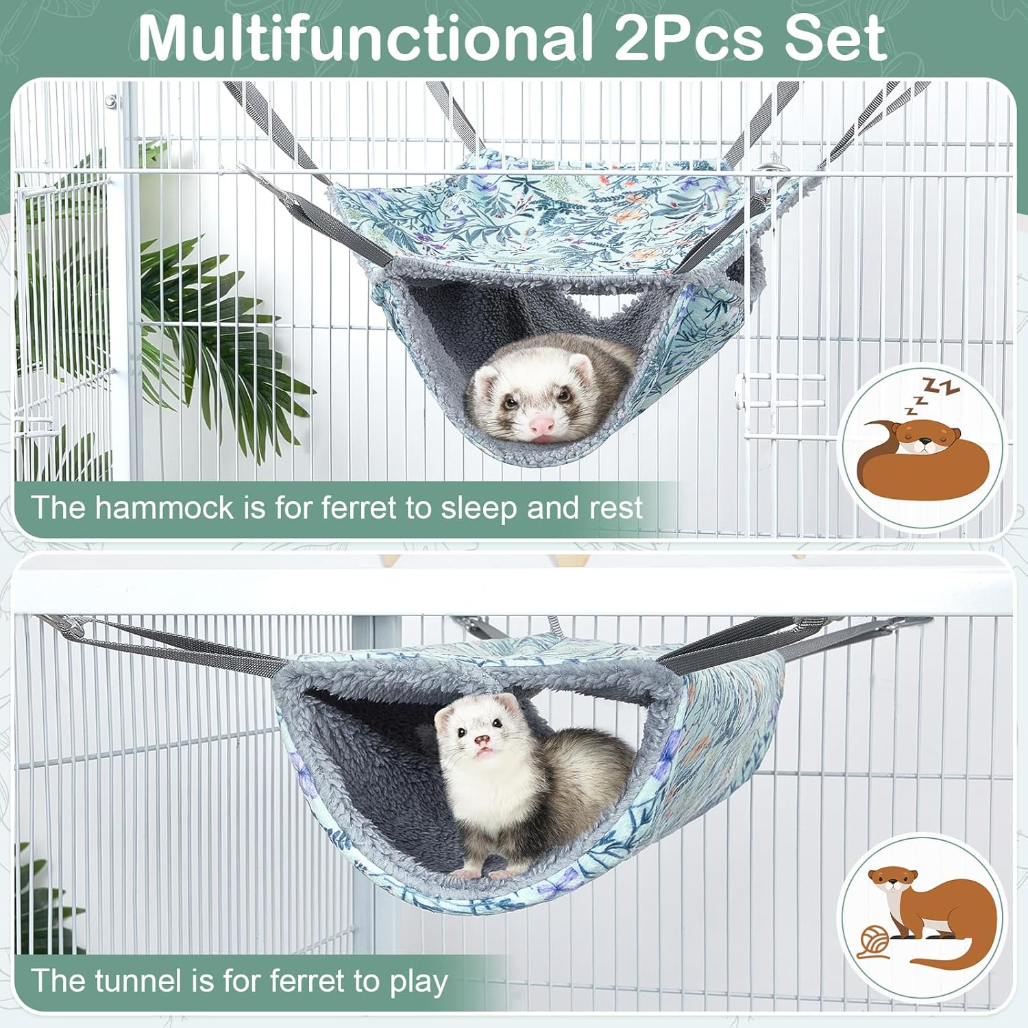 - Multifunctional Combination: The guinea pig hammock and tunnel are designed as a two-piece set; The hammock is for small pets to rest, and the tunnel is convenient for small animals to play; It is suitable for multiple ferrets to use at the same time, meeting the different needs of pets and enhancing interactivity and fun