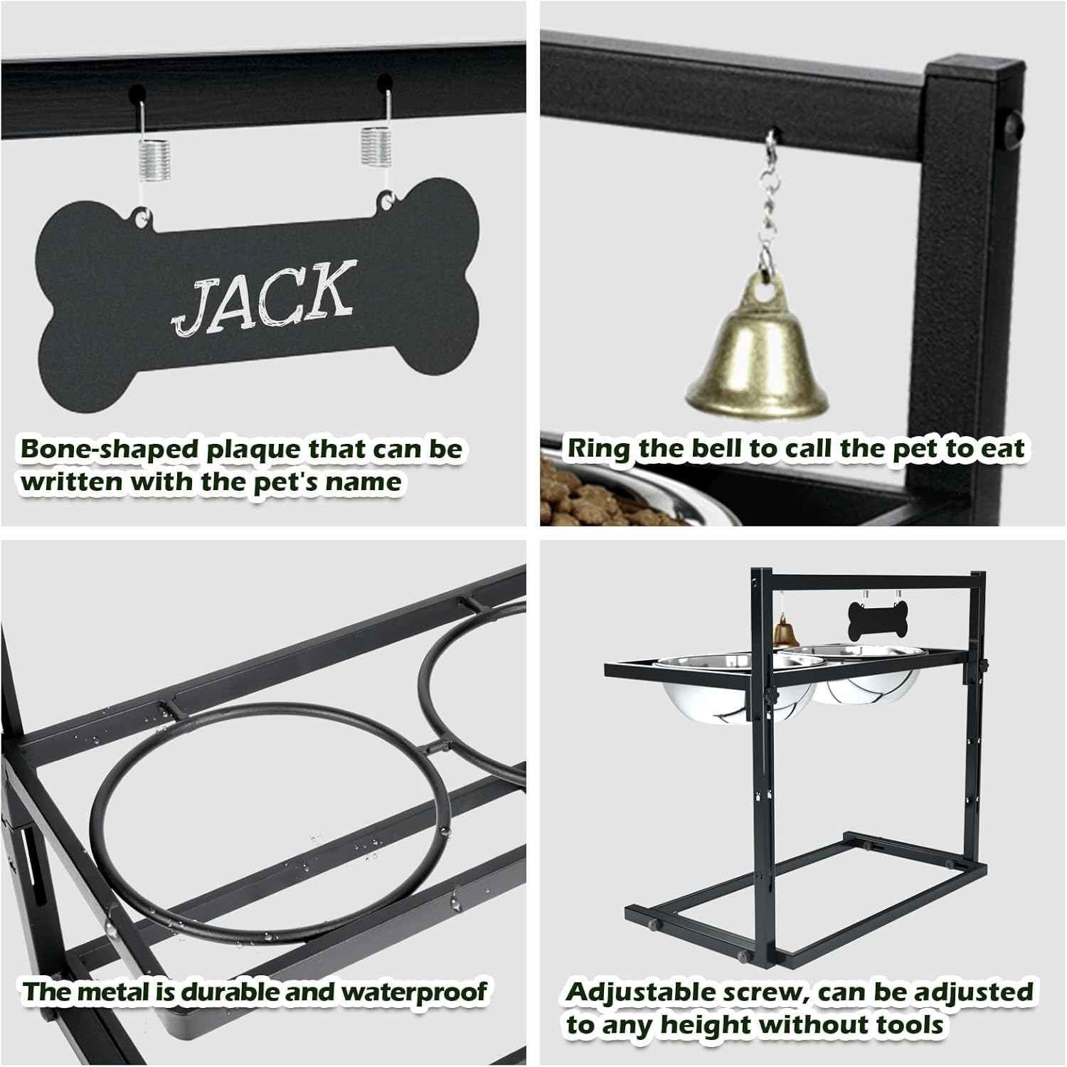 - Durable Metal Construction Anti-Tip Design: Our dog bowl stand is made of high-quality metal to ensure it stays strong and prevents dogs from biting or scratching the dog bowl rack features an anti-tip design, the bottom frame can be adjusted back to prevent mischievous dogs from tipping over the dog food bowl rack