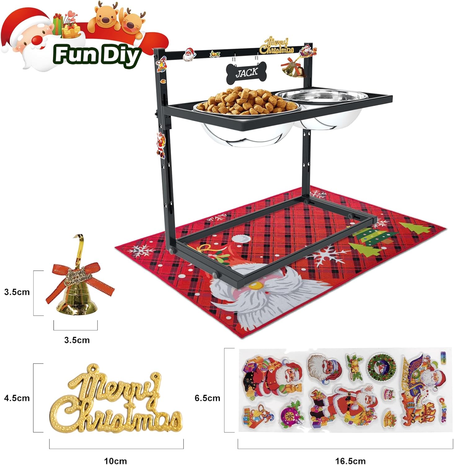 SHAINFUN Christmas Elevated Dog Bowls for Large Breeds with Mat, Adjustable Height, Tall Raised Dog Food Water Bowl Stand Gift for Dogs