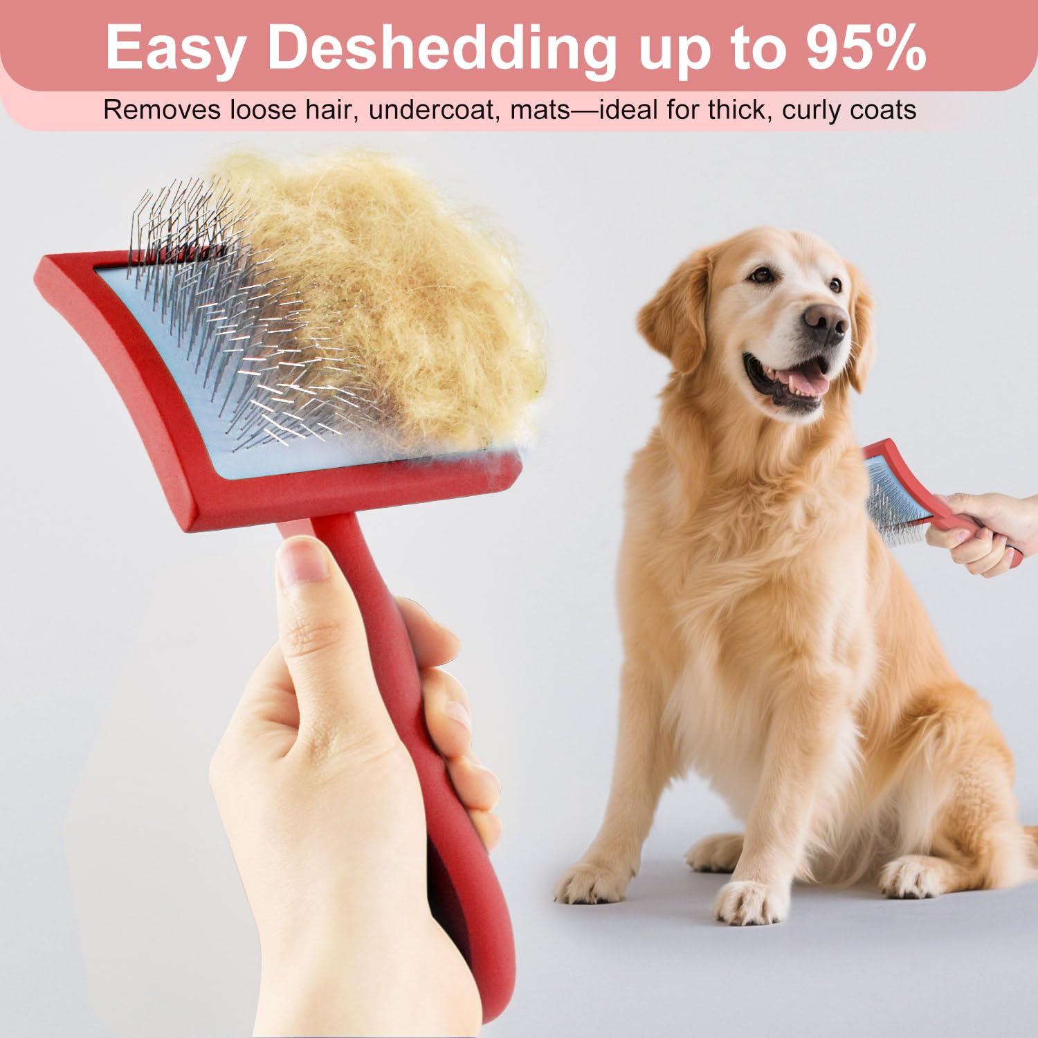 - Effective Undercoat Removal- Doodle brush is good at removing naturally shedding dead and floating hairs and reducing hair buildup, especially thick and curly coats; The dog slicker brush can be layered to avoid tangled hairs; Suitable for golden retriever, husky, poodle, cuckoo, bournemouth cuckoo, australian shepherd and other breeds of dogs.