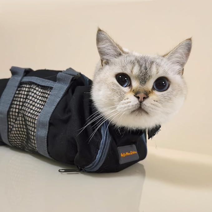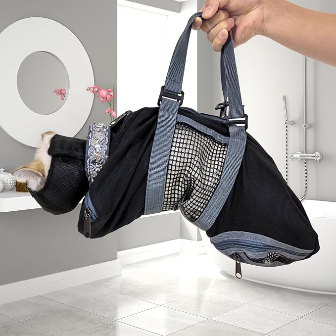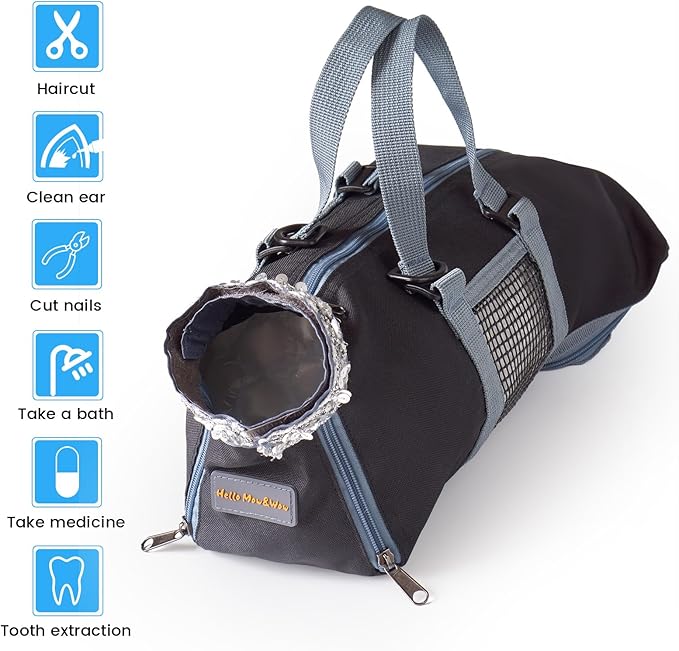 - Versatile Grooming Tool:Perfect for a wide range of grooming tasks, including nail trimming, bathing, brushing, and general pet check-ups. The bag features adjustable straps and zippers to securely hold your cat in place, preventing accidental scratches or injuries.
