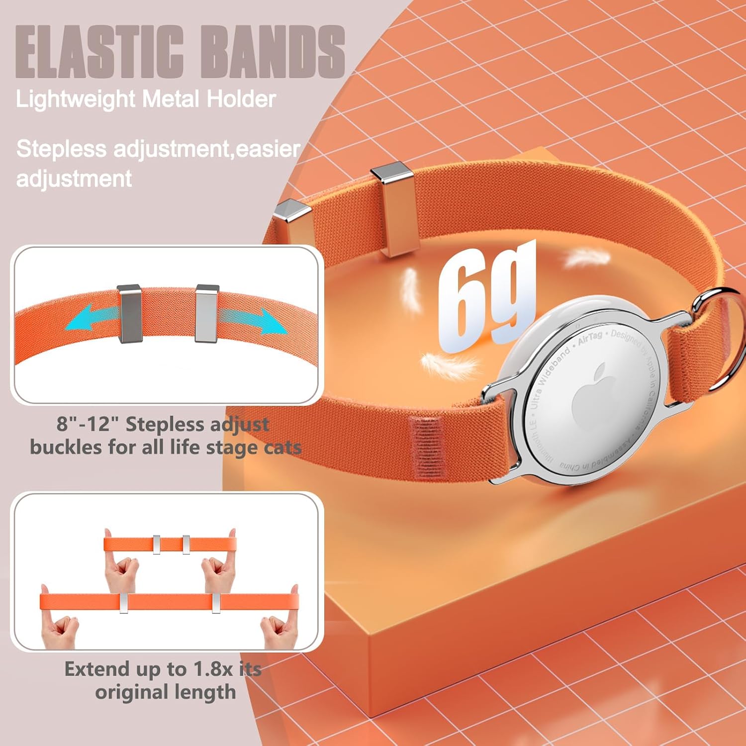 - Stepless Adjustment: Designed for a perfect fit and aesthetics, the cat collar AirTag holder provides seamless comfort with its smooth, hassle-free adjustment. Say goodbye to guessing or pulling. NOTE: This is not a breakaway collar, it uses elastic properties to prevent your cat from choking.