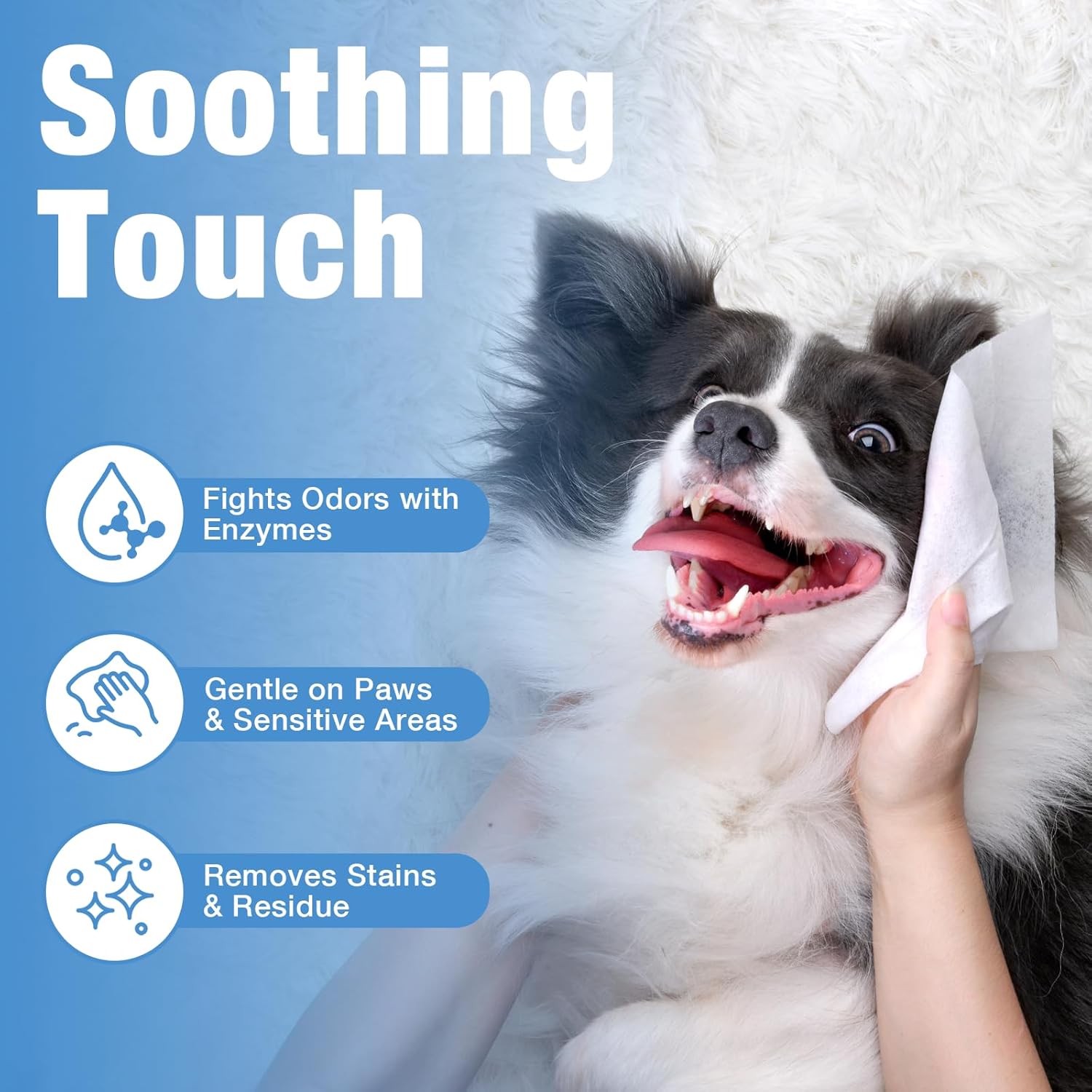 Dog Wipes and Cat Wipes Unscented with Enzymes to Eliminate Odors Paw Wipes for Muddy Feet Tear Stain Wipes for Eye Gunk Gentle Hypoallergenic for Sensitive Skin 80 Count