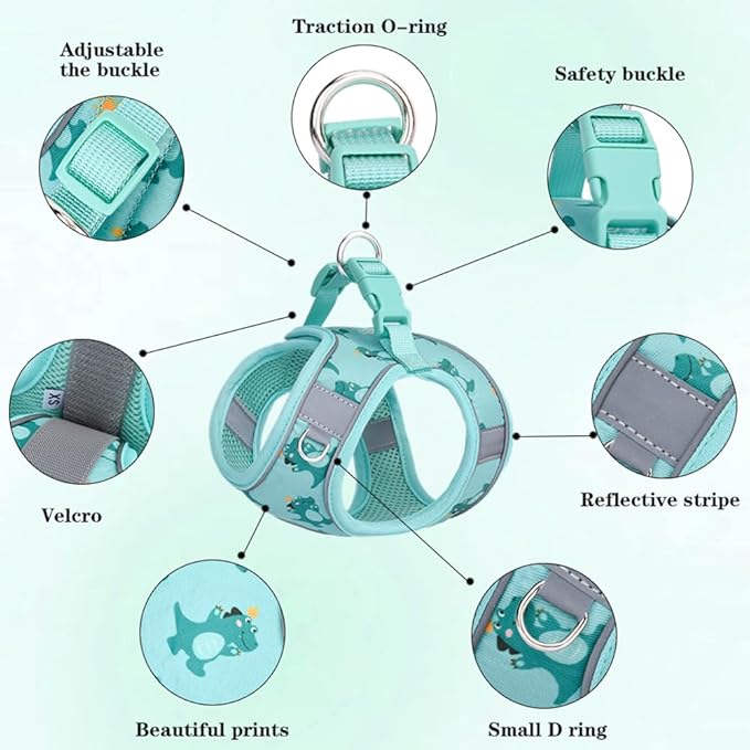 - Desh Harness & Leash Set: You will receive 1x walking harness and 1x 5ft leash at the same time. The mesh harness attached with a small D ring on the front which designed for ID tag, Led light or Poop bags,the O ring attach for leash.The leash made of nylon,strong and durable,5 ft long make your dog could walk free and the distance also easy to control.Perfect choice for your dogs.