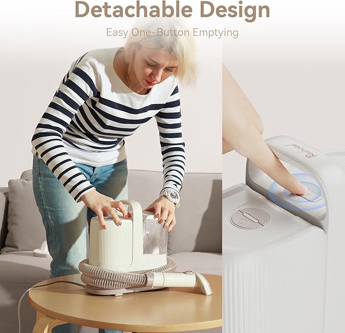 - ๐ถ๐ฑใConvenient Storage and CleaningใWith a spacious 1.3L dust box, this vacuum allows for extended grooming sessions without frequent emptying. It features a one-click dust box release for easy cleaning and a thoughtful long cord design (2.6m power cord + 1.45m detachable hose) for unrestricted movement, ensuring a clean and efficient grooming environment.