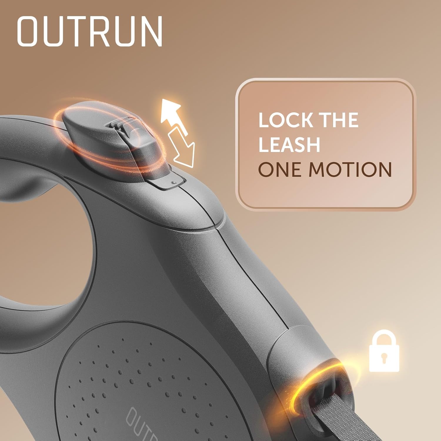 - 【One-Touch Brake/Lock System for Quick Control】OUTRUN dog leash retractable design has a simple one-button system to lock and unlock. It’s so easy, you can do it with just one hand.