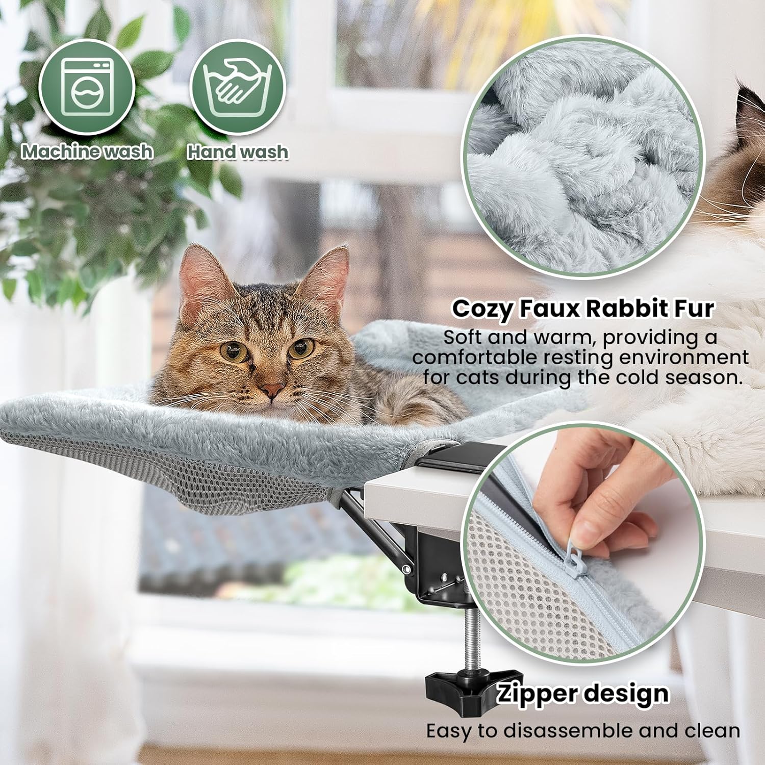 - 【Zipper Design & Faux Rabbit Fur Material】The cat furniture features a zipper design for easy installation and disassembly for cleaning. The fabric is made of comfortable faux rabbit fur material, which is soft and warm, providing a comfortable resting environment for cats during cold seasons. It is machine washable and hand washable.