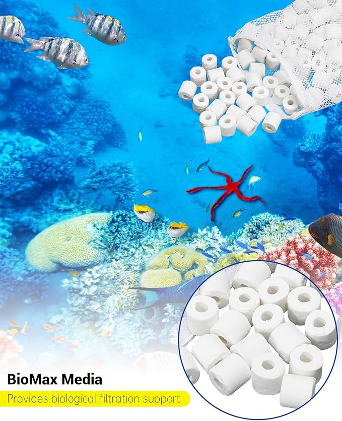 - Product Includes: 28 pcs three-stage filtration tank filter maintenance kit Replacement filter media kit, Include 8*Bio Sponge filter media, 8*foam filter pads, 8*water polishing pads, 4*500g BioMax media, easy to achieve triple filtration.