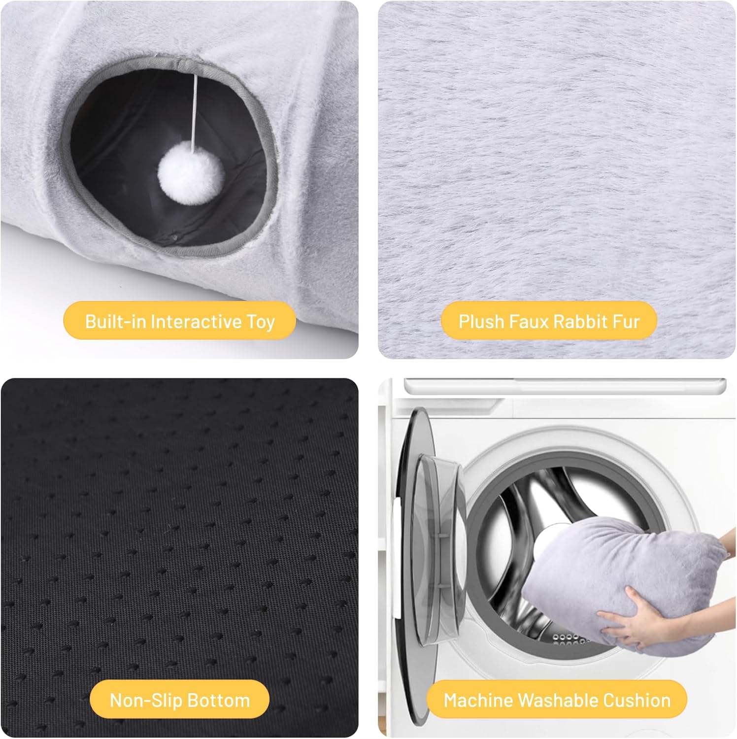 - PREMIUM COMFORT & PET-FRIENDLY MATERIAL: Crafted with ultra-soft and warm faux rabbit fur, this cat tunnel offers superior comfort and coziness. The pet-friendly fabric is gentle on your cat’s paws and provides a safe, inviting space for rest and play.
