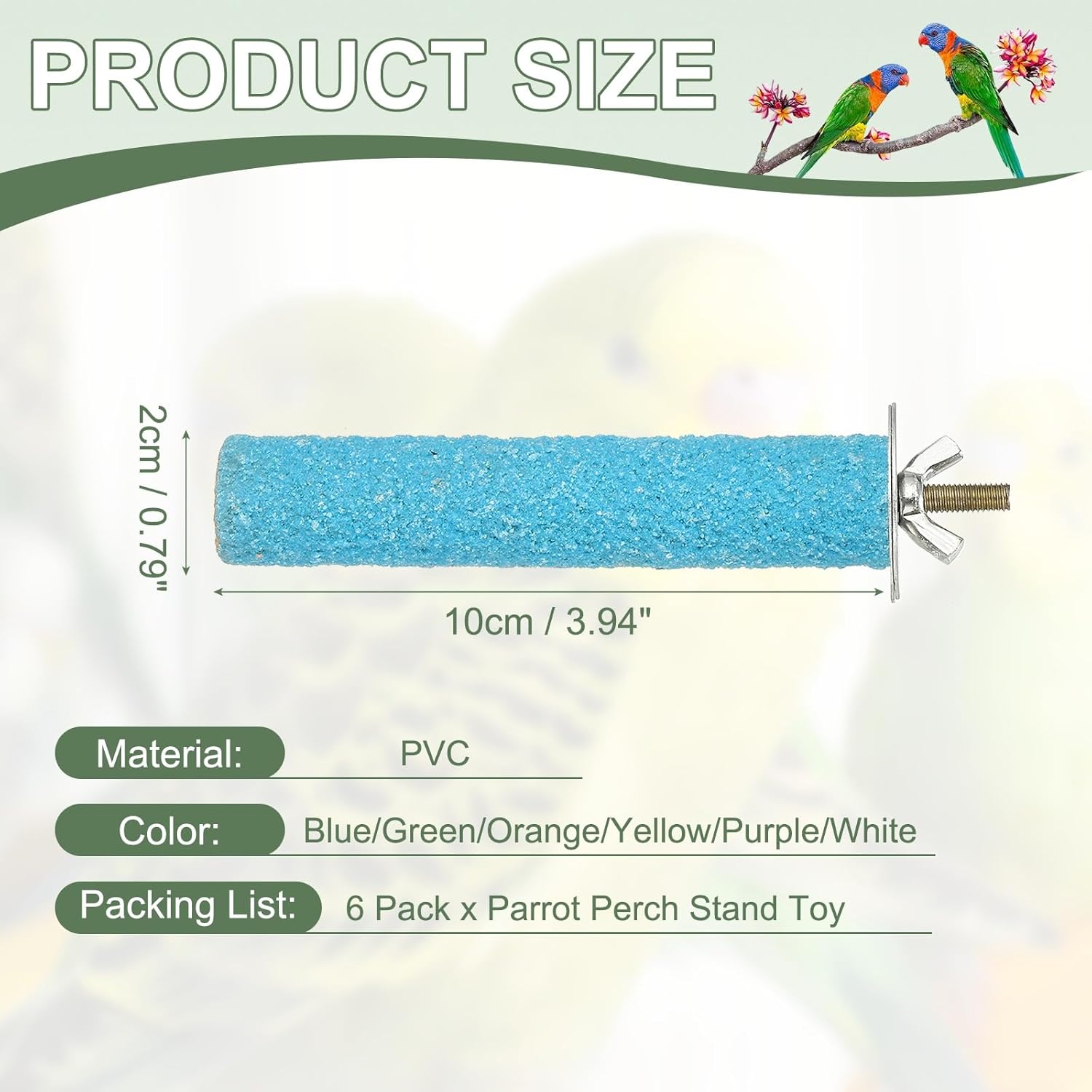 - Product Specifications:Size:10 x 2 cm / 3.93 x 0.79 inch (L x W); Color: Blue/Green/Orange/Yellow/Purple/White; Material: Wood; Packing List: 6 Pack x Parrot Perch Stand Toy