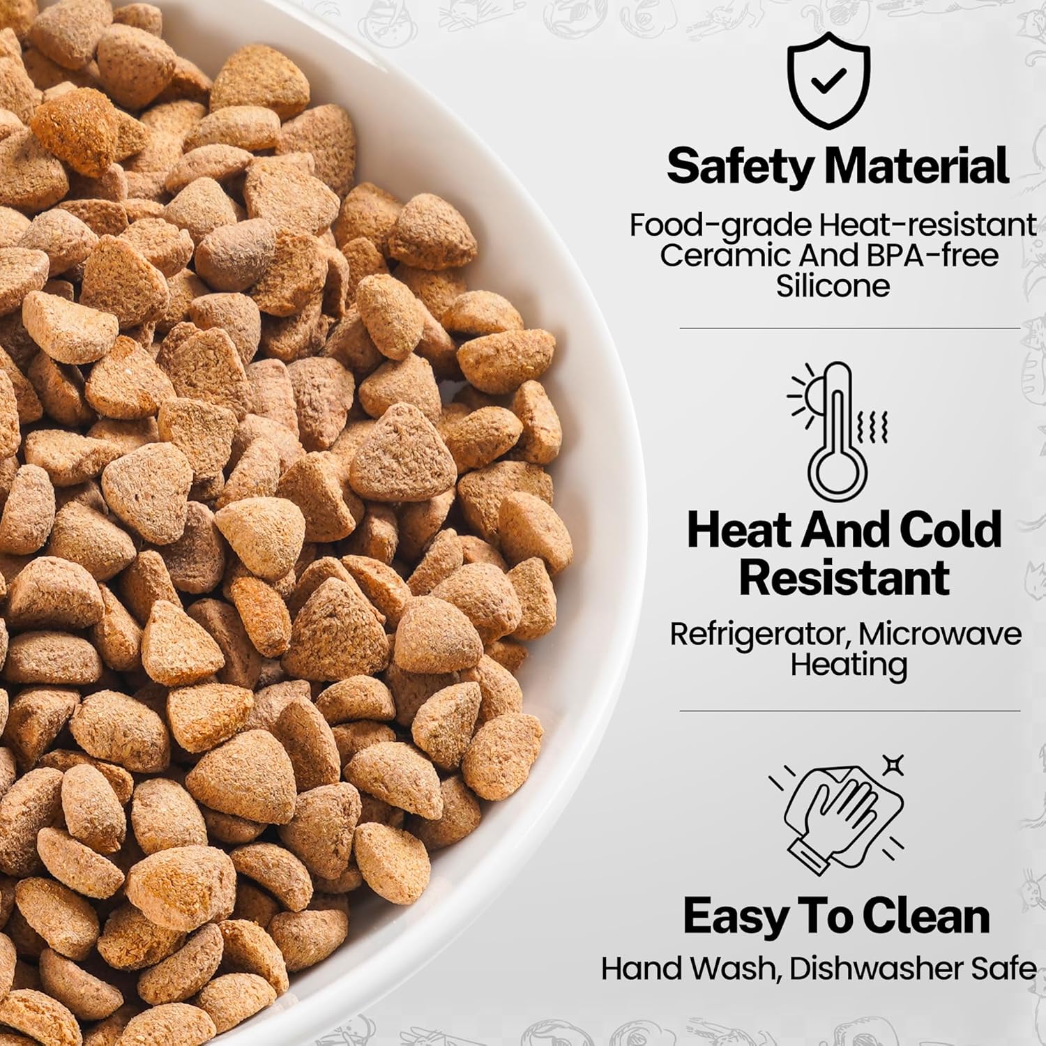 - 【Anti-Slip Bottom】- Our ceramic cat dish with a silicone bottom ensures stability, preventing any sliding or tipping while your feline friend enjoys their meal. Rest assured, it stays quiet without any unwanted noise and safeguards your floors from scratches.