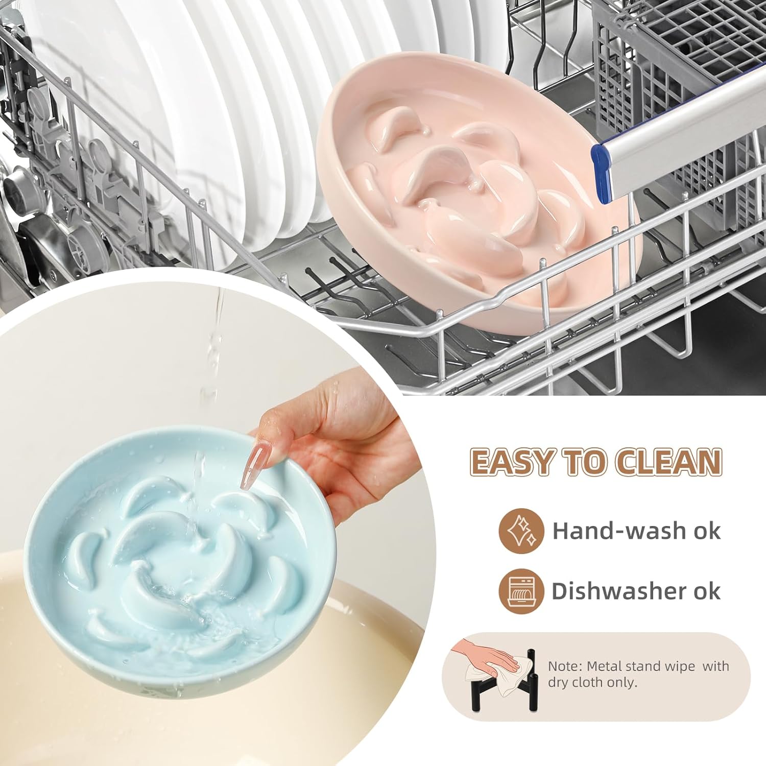- Multi-Purpose & Easy to Clean - Ideal for cats and small dogs under 11 lbs (5 kg). The cat slow feeder bowl is microwave and dishwasher safe - and the stainless steel stand can be easily wiped clean with a dry cloth.