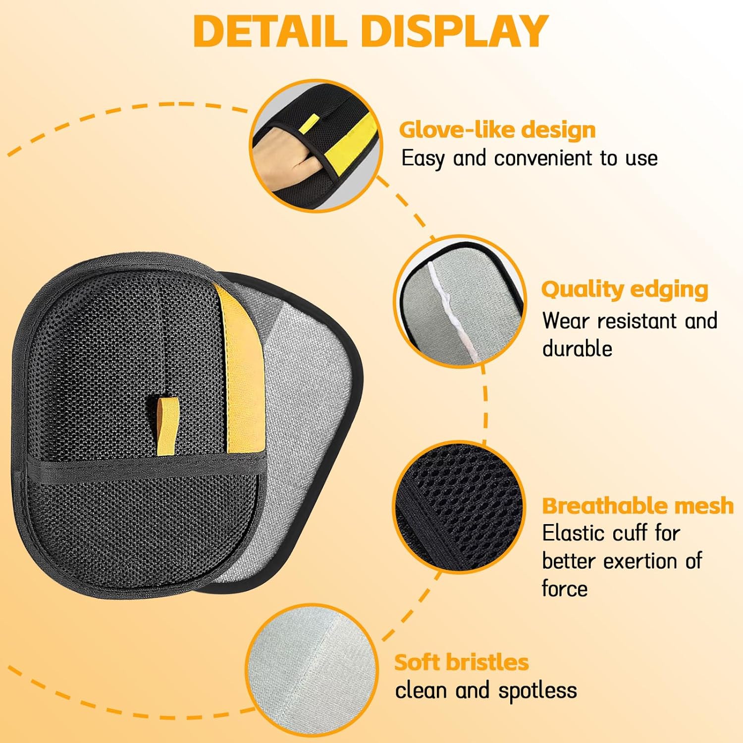 - Efficient Hair Removal: Quickly and easily remove pet hair from sofas, carpets, clothes, etc. Simply put on gloves and gently wipe to easily clean the surface and save time. Keep the entire home and car interior clean and hair free.