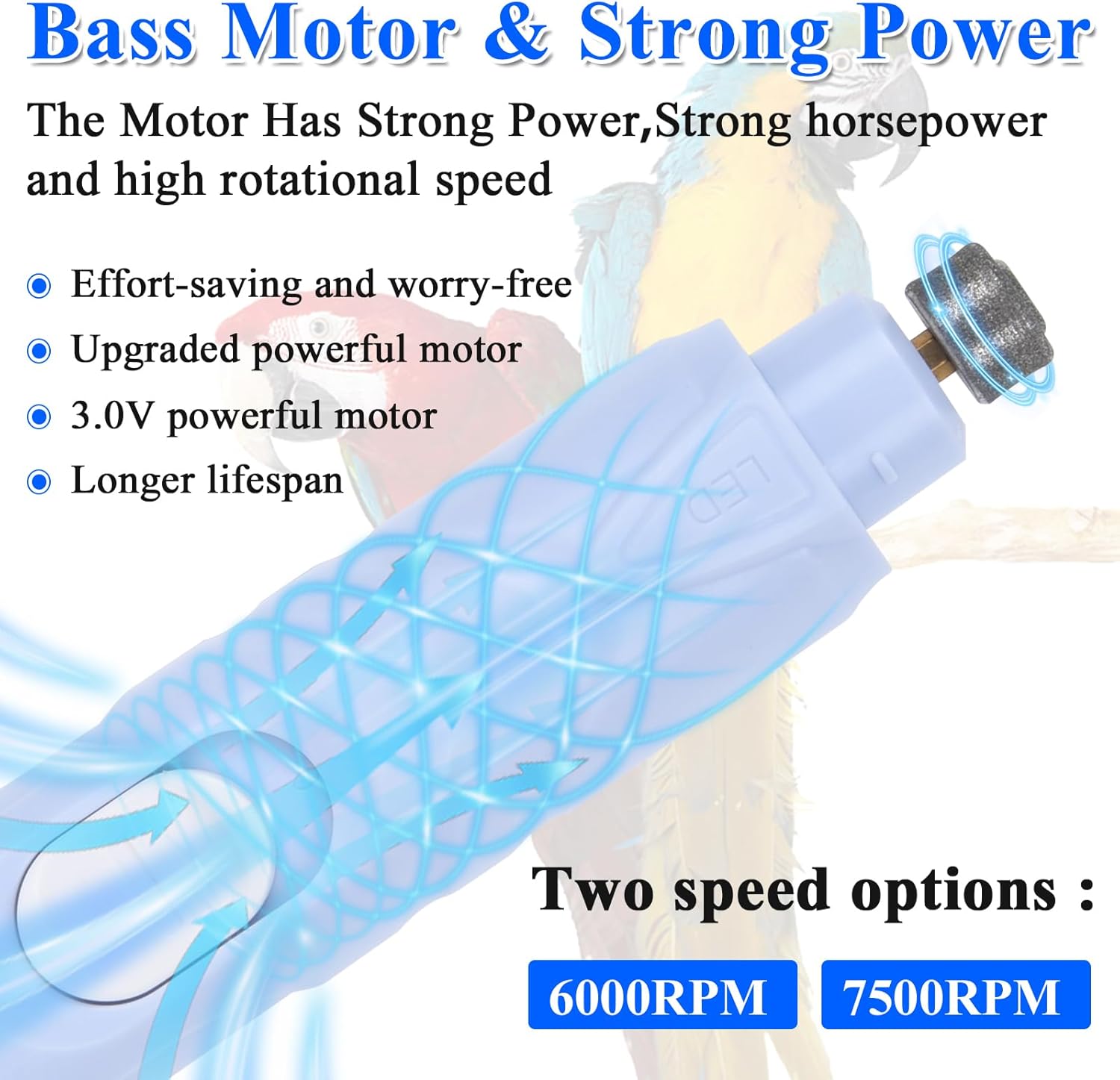 - Ergonomic non-slip handle: Bird nail grinder has an exclusive cactus-shaped handle that fits the hand shape, is non-slip and sweat-proof, and can be operated for a long time without fatigue, and novices can also easily control it.