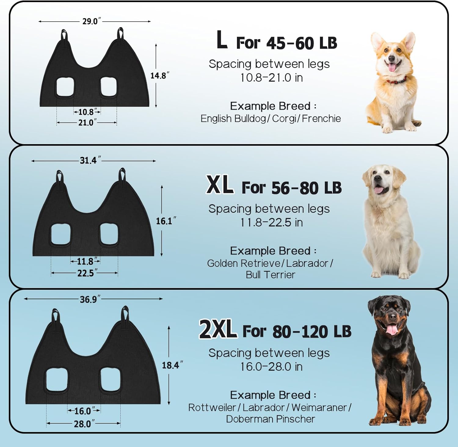 - 【Suitable For Most Pets And Active Guys】Our dog holder for grooming suits is for pets under 65 lb or over 10 lb. It’s suitable for pets which maximum distance of front and back legs is about 10.3 inch-S(such as Teddy), 12.4 inch-M (such as Kirky), 14.6 inch-L(such as Labrador). Cuz, the lock and shrink ring of the carabiner can also ensure that the strap will not slip out during use to ensure the safety of active dogs. Notice: Our pet hammock is not suitable for dogs larger than 65Ib.