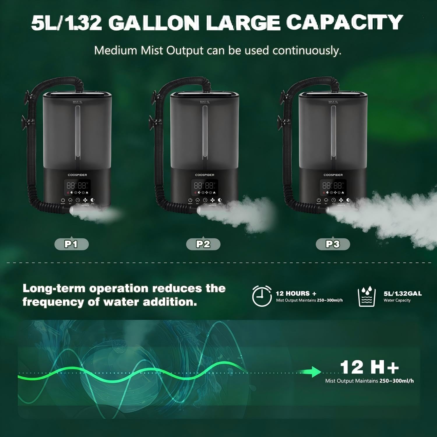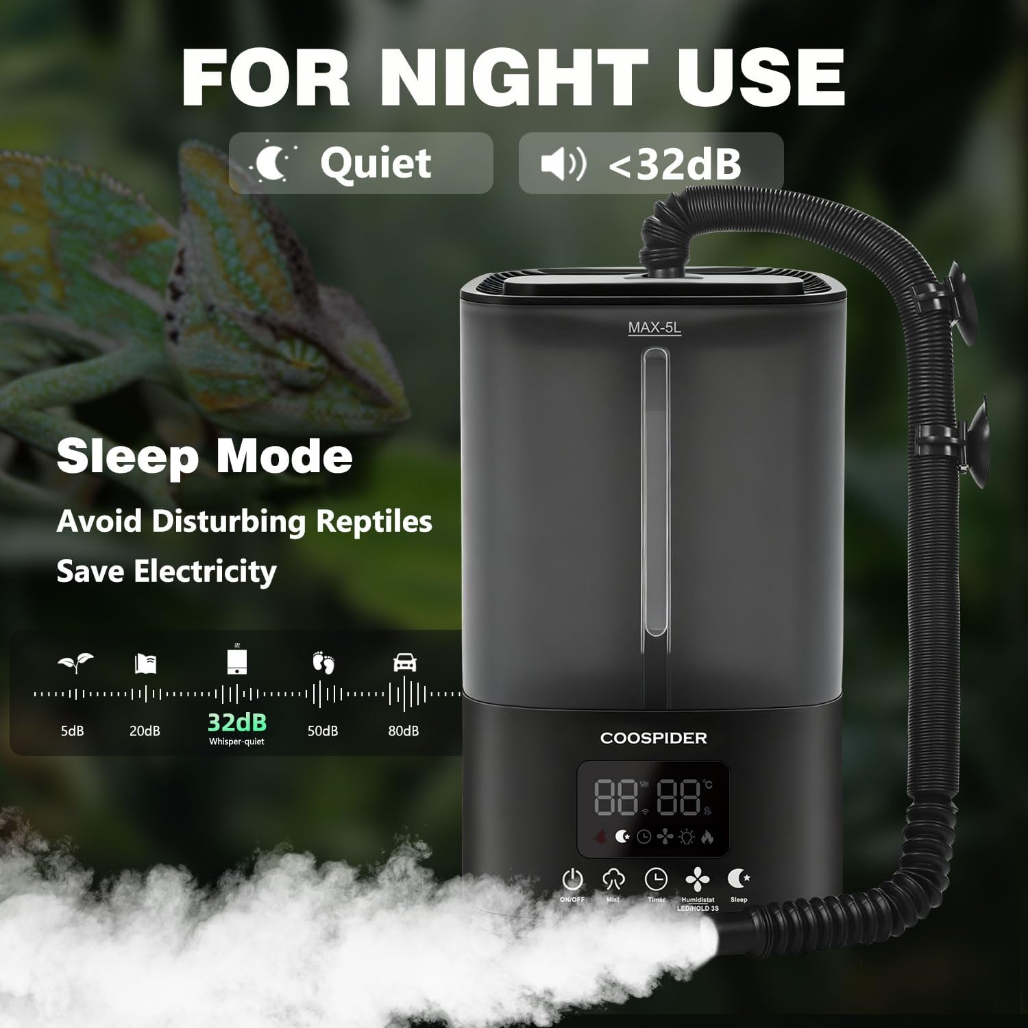 Coospider 5L Reptile Fogger Humidifier, Automatic Humidifiers for Reptiles Tank, Terrarium Humidifiers with Timer and Humidity Control, Reptile Misting System for Reptiles Amphibians Herps Vivarium