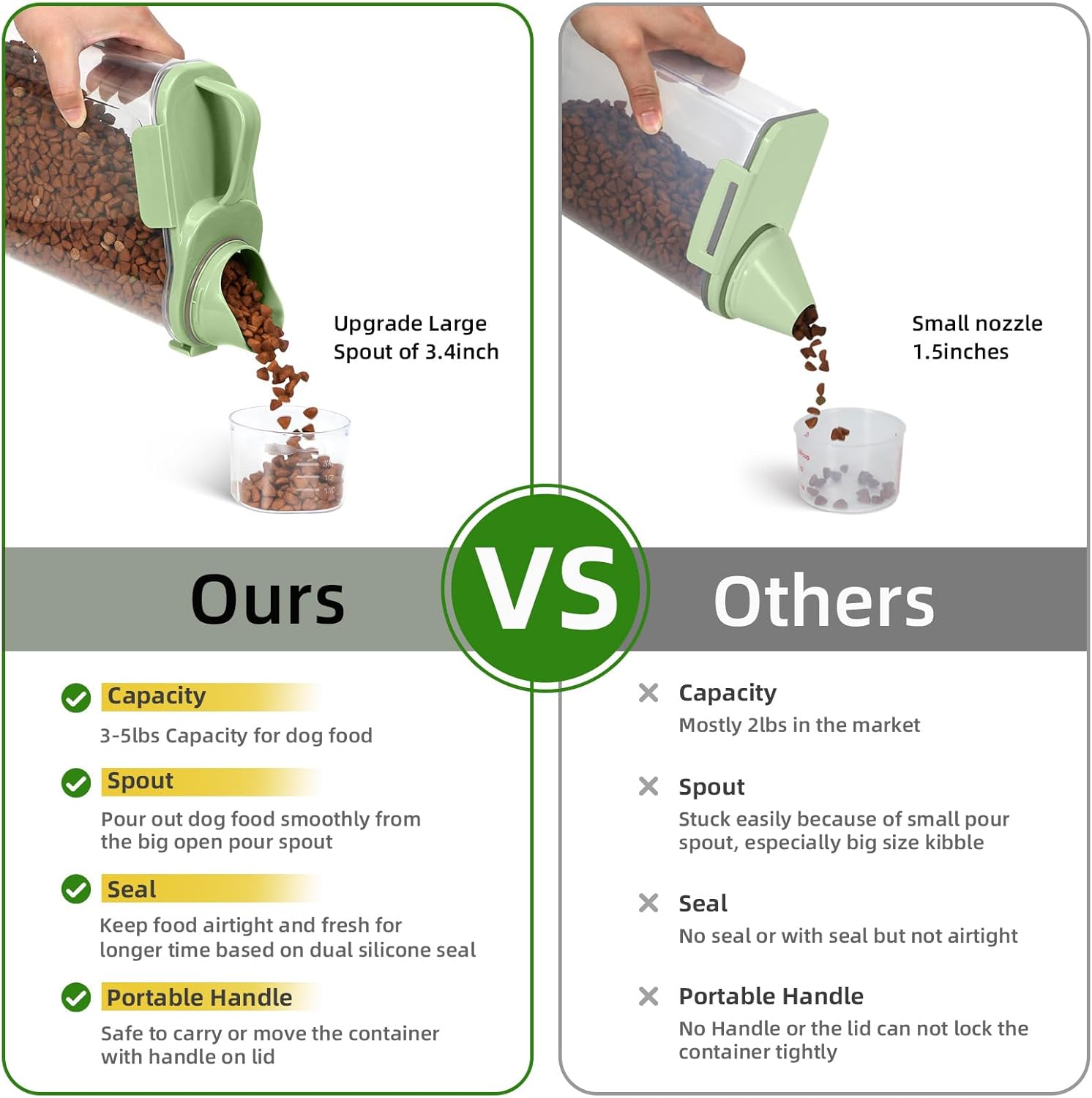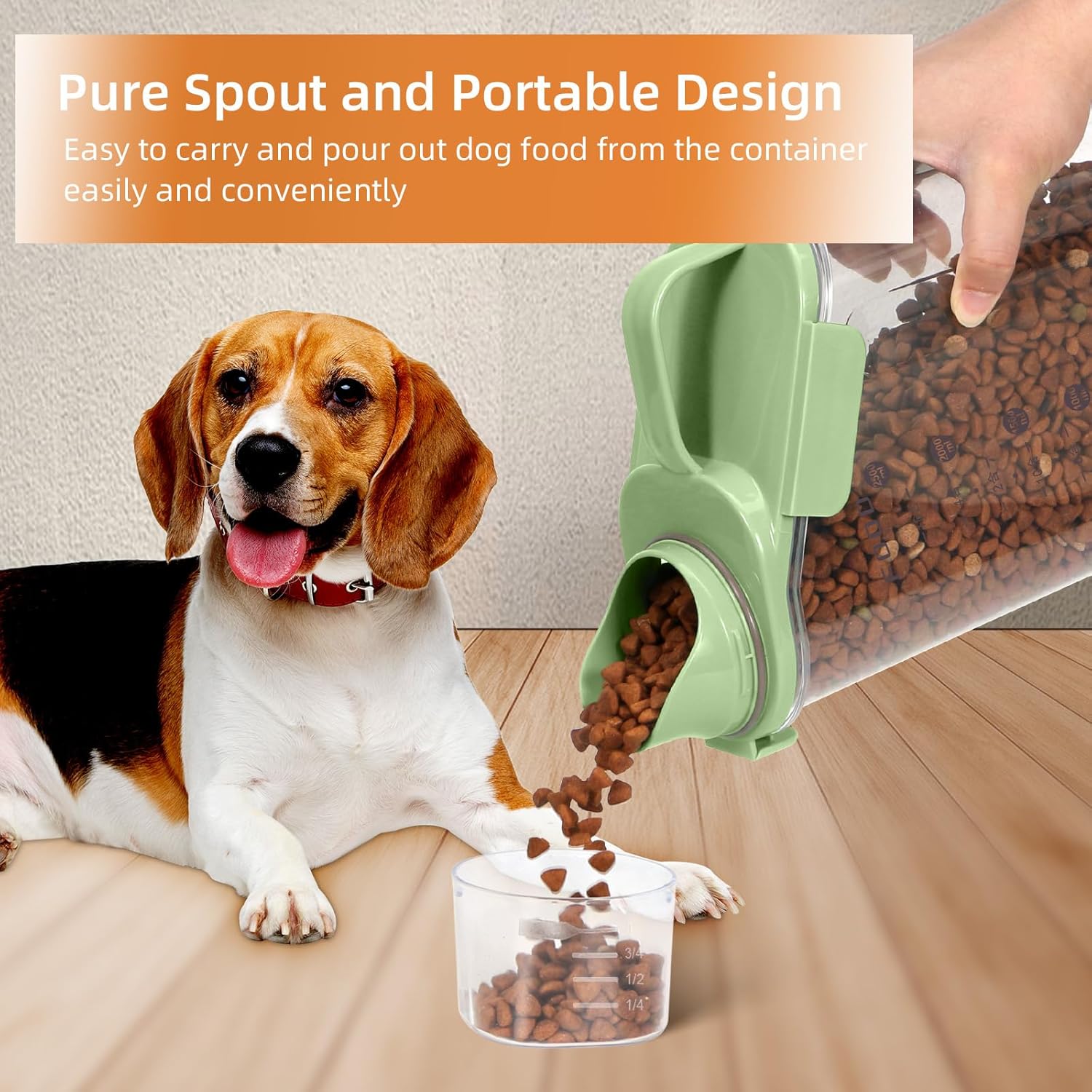 Dog Food Storage Container, Upgraded Large Nozzle BPA-free, 3-5 LBS Plastic Pet Food Storage Containers, With 4 Sealed Clasps, 1 Measuring Cup and Handle (Bright Green)