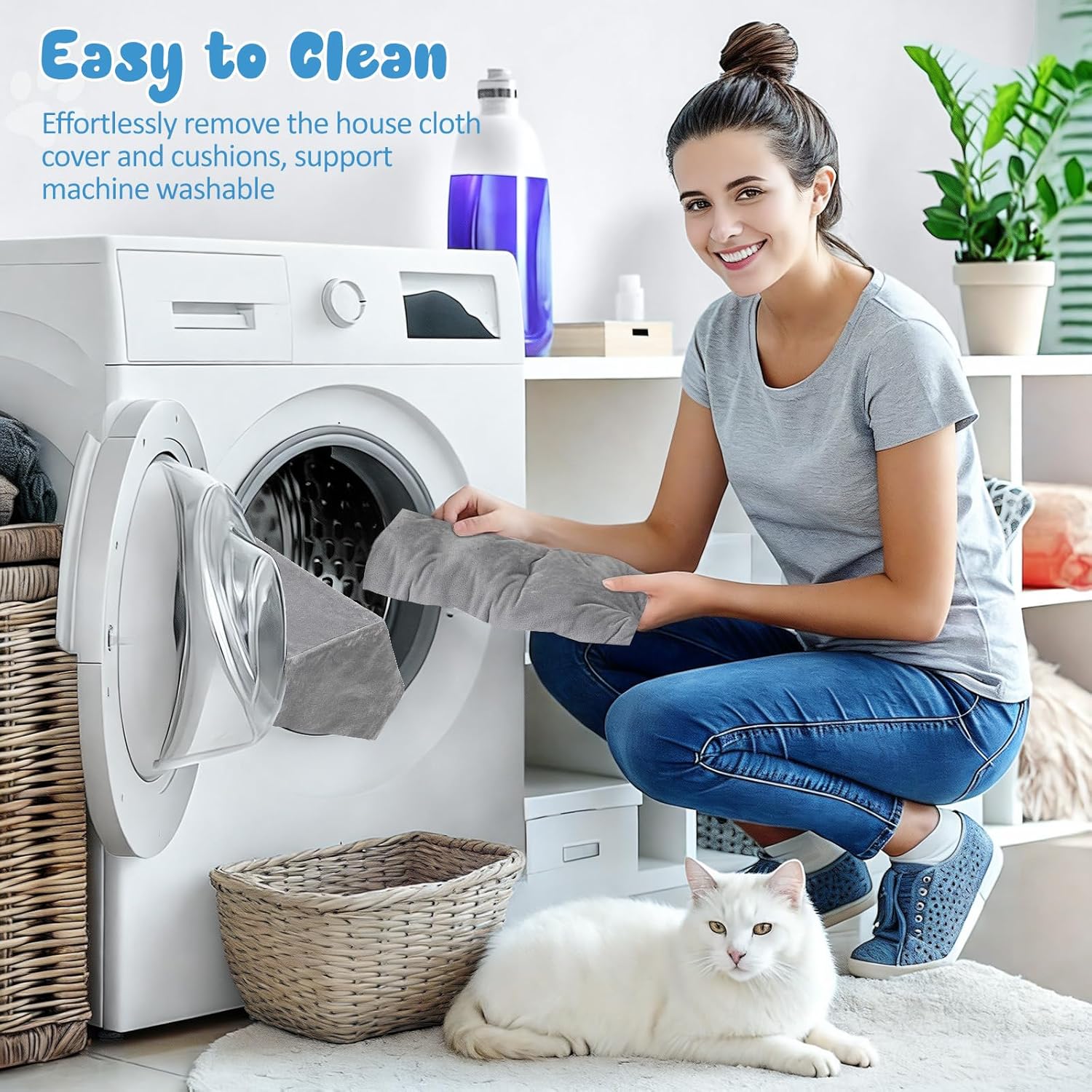 - Detachable & Washable: Featuring removable design, the cloth covers of square house and 2 cushions are able to clean regularly, supporting both hand and machine washing to maintain a clean and healthy environment for your cat play tunnel. After cleaning, reassembly is effortless without tools, let your cat enjoy the fresh space immediately.