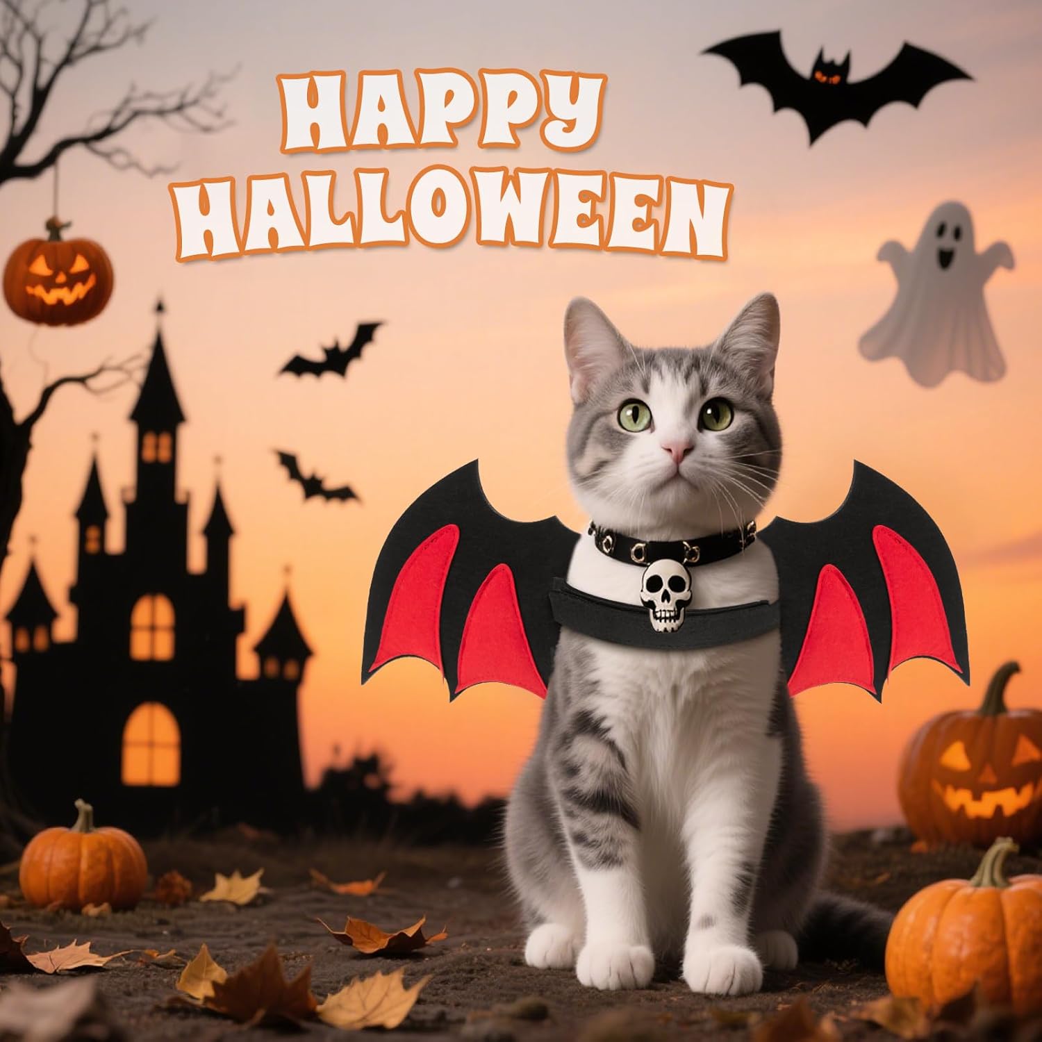 Byhoo Halloween Cat Bat Wings Costume-Sturdy Shape Without Collapsing, Essential for Halloween, Fits Kitten,Adult Cat & Small Dog