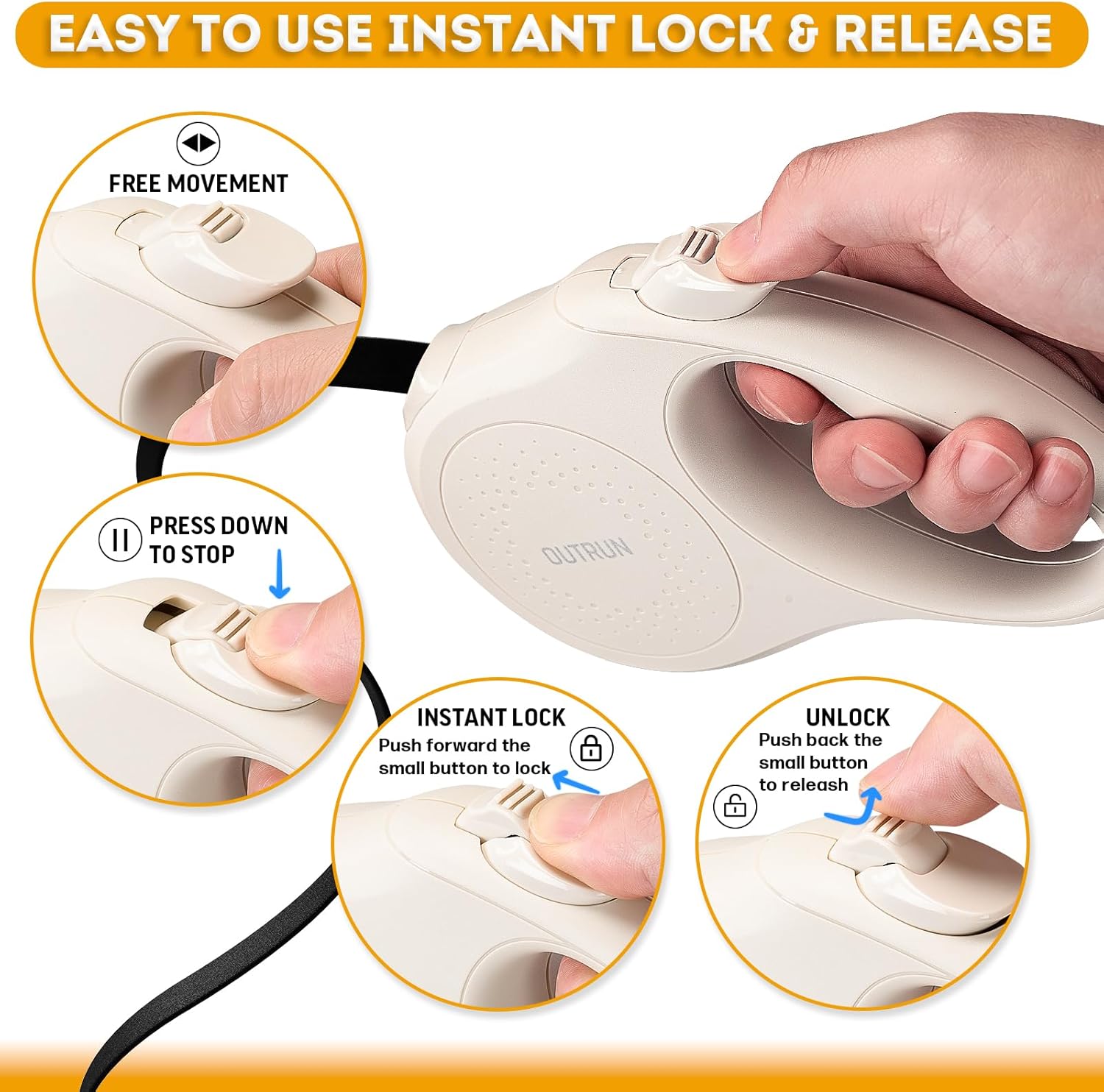 - 【One-Touch Brake/Lock System for Quick Control】OUTRUN retractable dog leash design has a simple one-button system to lock and unlock. It’s so easy, you can do it with just one hand.