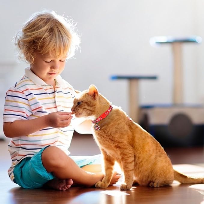 - Value 4-Pack with Cute Details:Each set of cat collars comes with a removable bell, paw pendant, and sturdy D-ring for ID tags (not for leashes). Get 4 in one pack—perfect for multi-cat homes or daily style changes.
