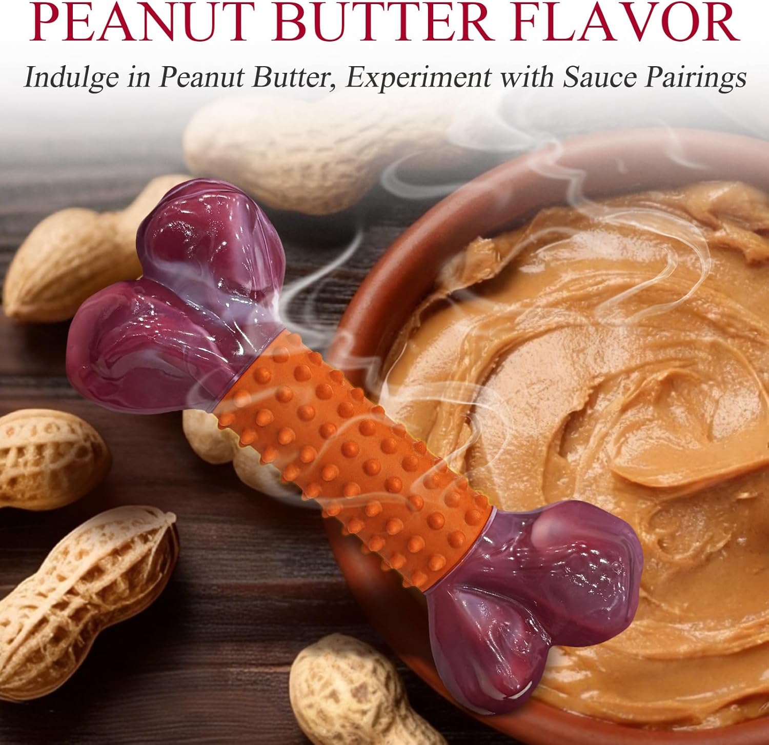 Apasiri Dog Toys for Aggressive Chewers Peanut Butter Flavored: 4-Pack Dog Bones for Large Dogs, 8" Chew Toys Long-Lasting, Tough Nylon & Rubber Dogs Toys