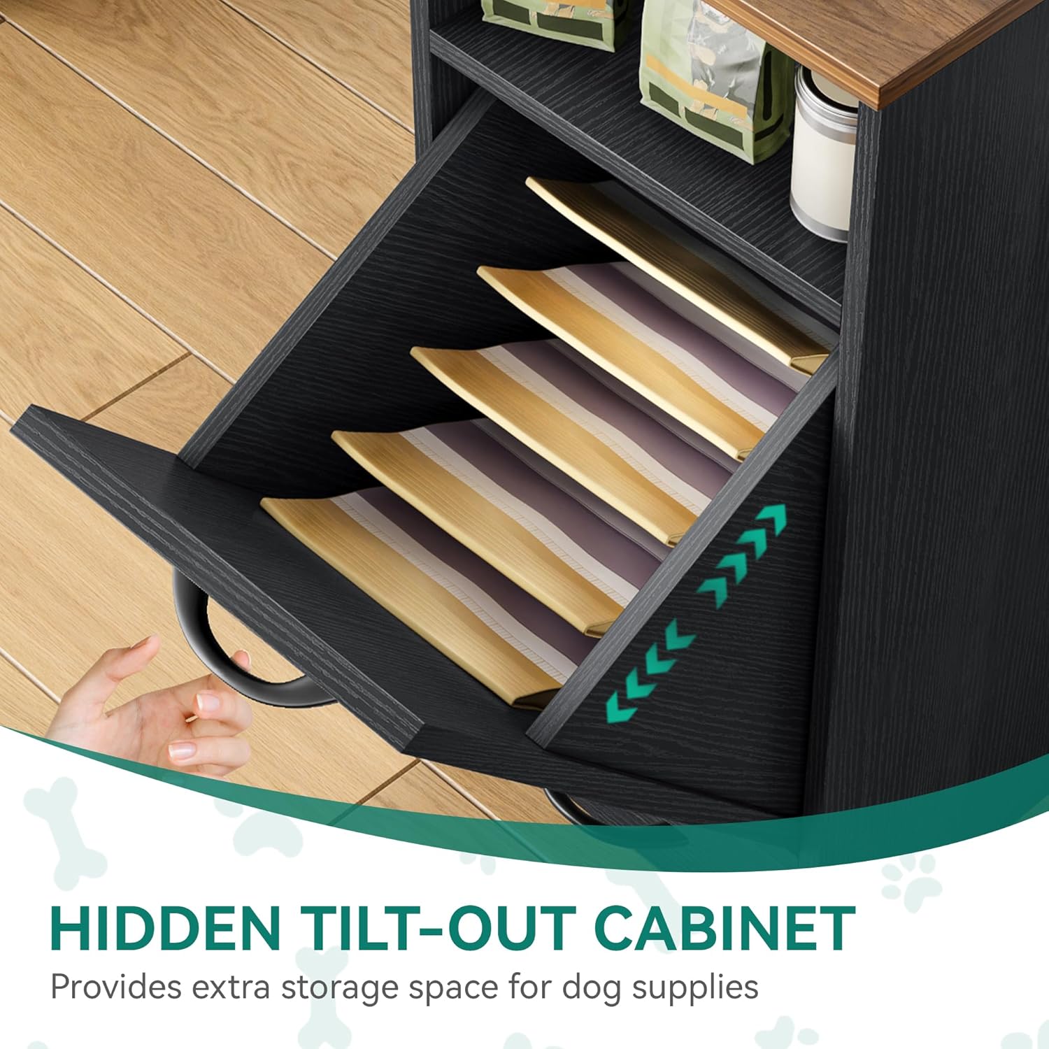 - Hidden pet feeder: When the dog is eating, pull out the storage at the bottom to reveal two dog food bowls, one for food and the other for water. When feeding time is over, push it back away from dust, debris and dog hair