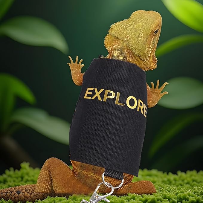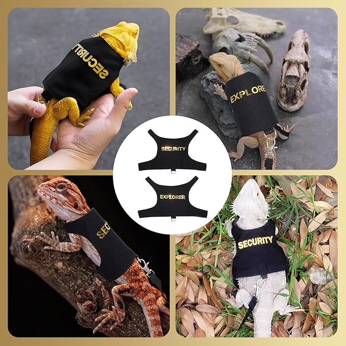 - Fun & Unique Design: The harness features “SECURITY” and "EXPLORER" printed on the back, adding a playful and charming look. This eye-catching design makes your lizard stand out while symbolizing the special bond between pet and owner