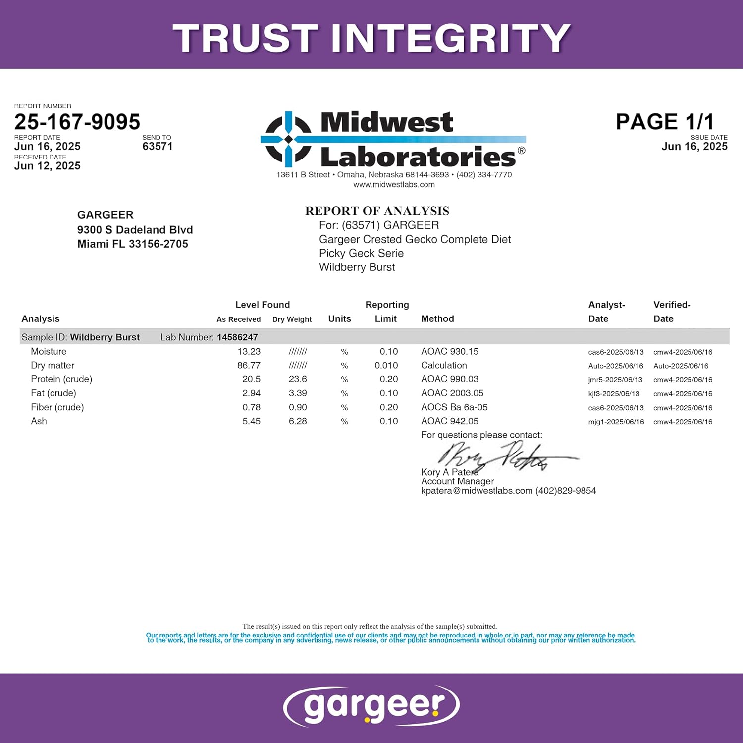 'Picky Geck' Wildberry Burst - Premium Crested Gecko Food | Antioxidant & Immune Support Formula | Real Fruit & Insect Protein | No Fillers - Only Premium Ingredients | 2oz | Made in USA.