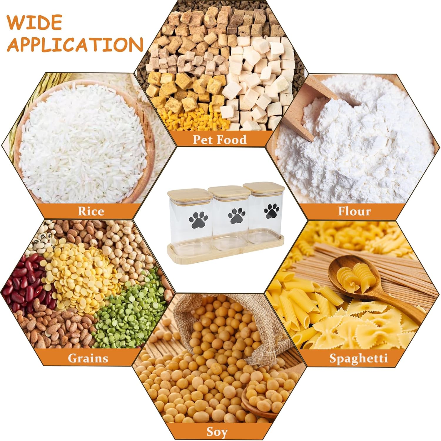 - 【Transparent Pet Food Can】:Glass pet food container are odorless, heat-resistant, and suitable for long-term storage of food. Glass food cans are healthier than plastic cans. Transparent dog food storage container are convenient for viewing the contents inside. You can quickly find what you want without opening every container. Pet food cans are easy to hand wash or rinse with water to keep clean.