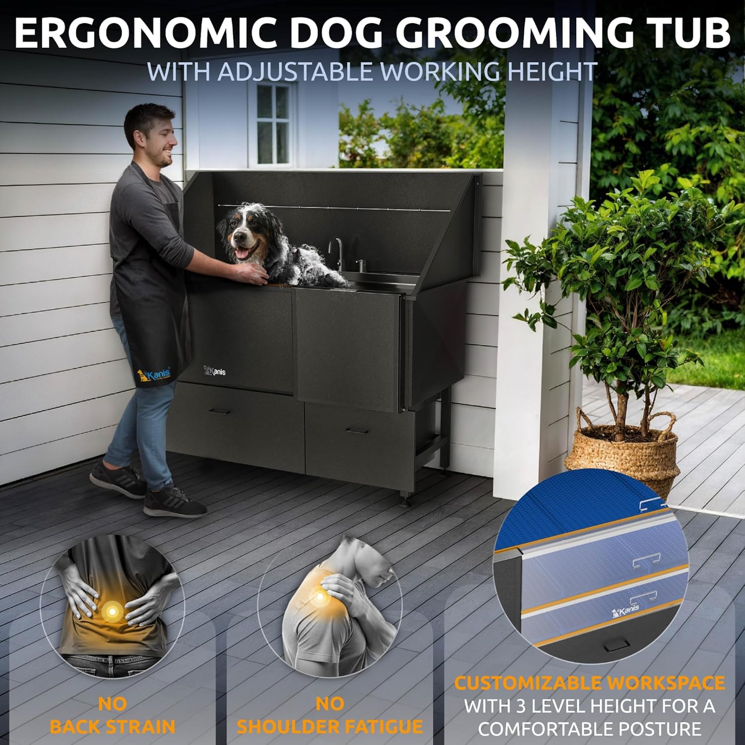 - BLACK SERIES 61" 2 DRAWERS - RIGHT RAMP UTILITY & GROOMING STATION: KANIS presents a versatile dog bathtub designed for both pet washing and household cleaning tasks. Perfect addition and easy to install in any grooming salon, utility room, laundry, garage, or mudroom