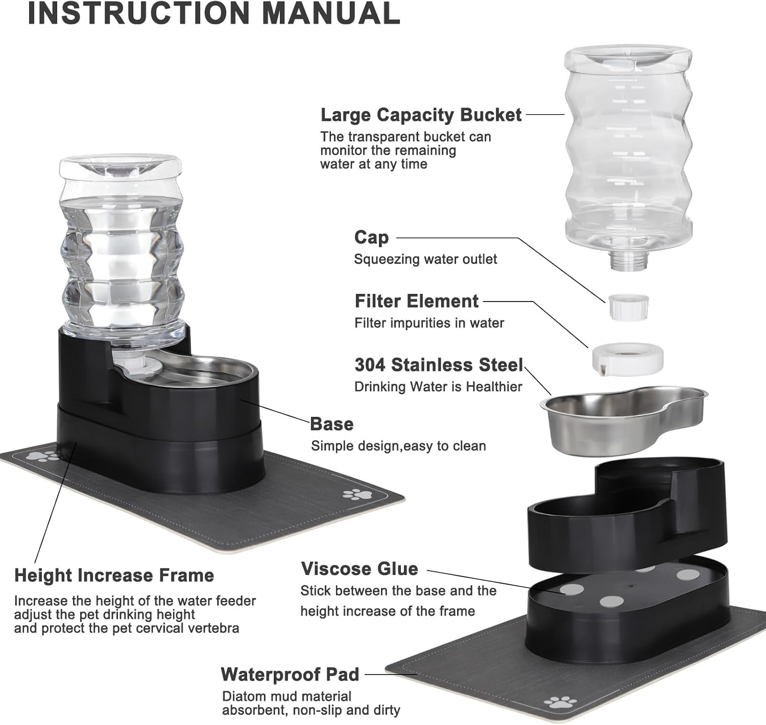 - Enhanced Leakage Prevention and Comfort: The base of the drinking unit incorporates a raised structure that effectively intercepts spills and is equipped with a non-slip material that prevents pets from accidentally knocking over while drinking. The water bottle is tightly connected to the base to provide all-around leakage prevention. The specially added raised base design takes good care of your pet's spine when drinking, allowing your pet to enjoy the best comfort while drinking from the fountain.