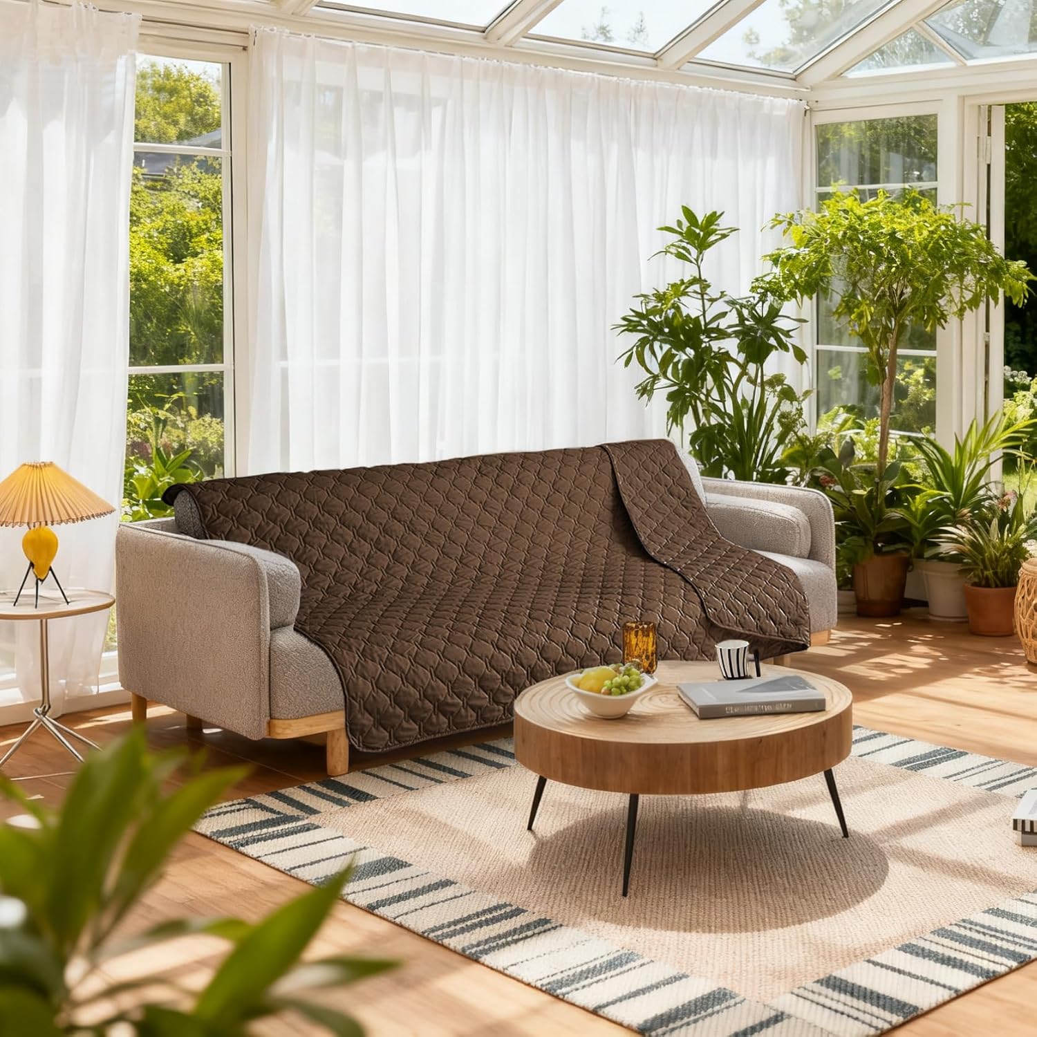 gogobunny 3X Stronger Waterproof Pet Blanket, Scratch Proof Furniture Protector for Dogs Cats, Reversible Cover 82x102 Inch, Dark Chocolate