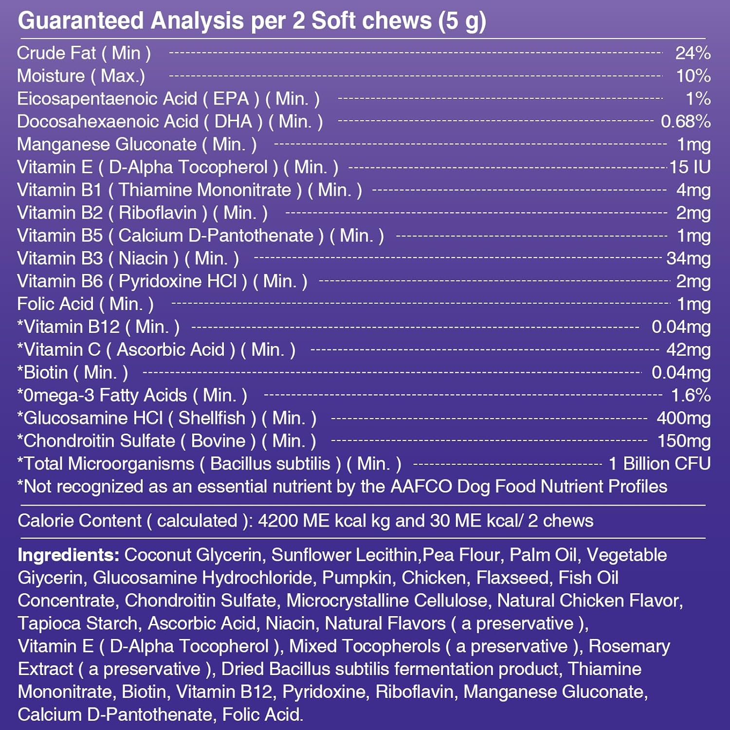 - ππππππππππ½ππ πΏππΎπ πππΌπππ ππππ πΎππππ: Made with a delicious duck flavor that dogs adore and crave. The soft chew format makes administering daily supplements effortlessβno more struggling with pills or powders. Just offer it as a tasty treat! (120 Chews per jar).
