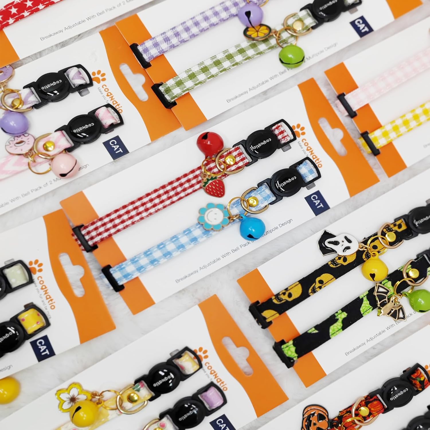 2 Pack Cotton Breakaway cat Collars with Bell,Safety Quick Release Pendant Cute Kitten Collar,Adjustable 20-30cm (Halloween2, 20-30cm)