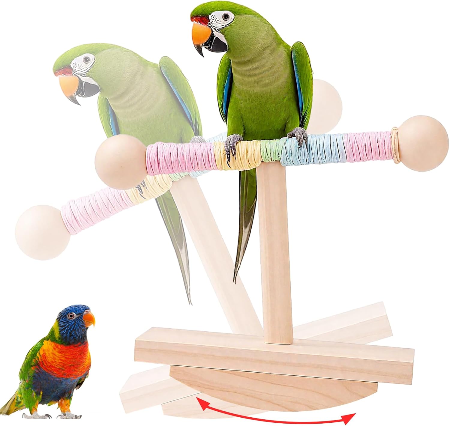 - [ Natural Materials ] : Natural wood bird perch stand training.The natural wooden construction is sturdy and safe, providing excellent grip for birds’feet, the top is equipped with 2 colorful toy balls to attract exploration and help reduce plucking behavior.