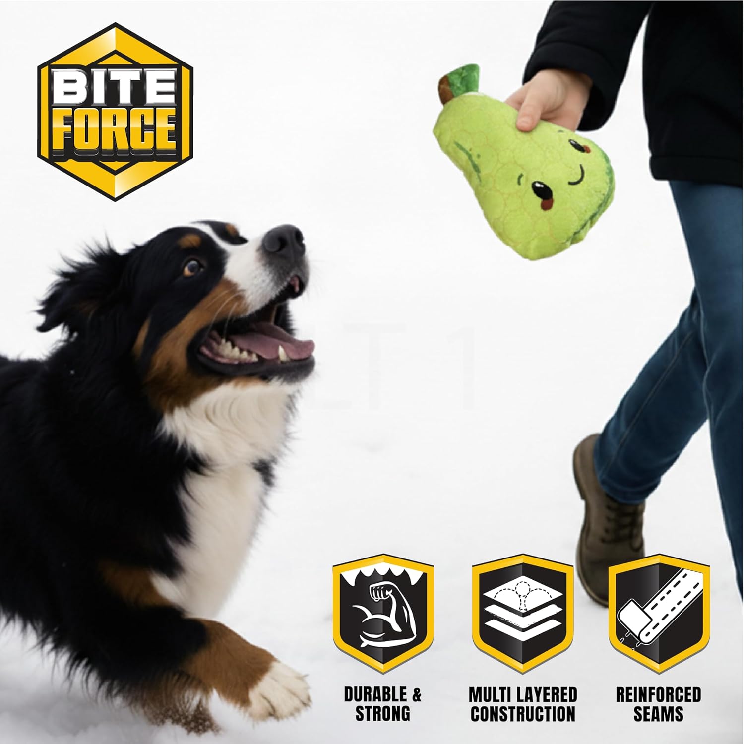 Bite Force -Durable & Strong Dog Toy Mr. Pear with Squeaker, Kevlar-Reinforced for Aggressive Chewers for Small Medium Large Dogs - Green.