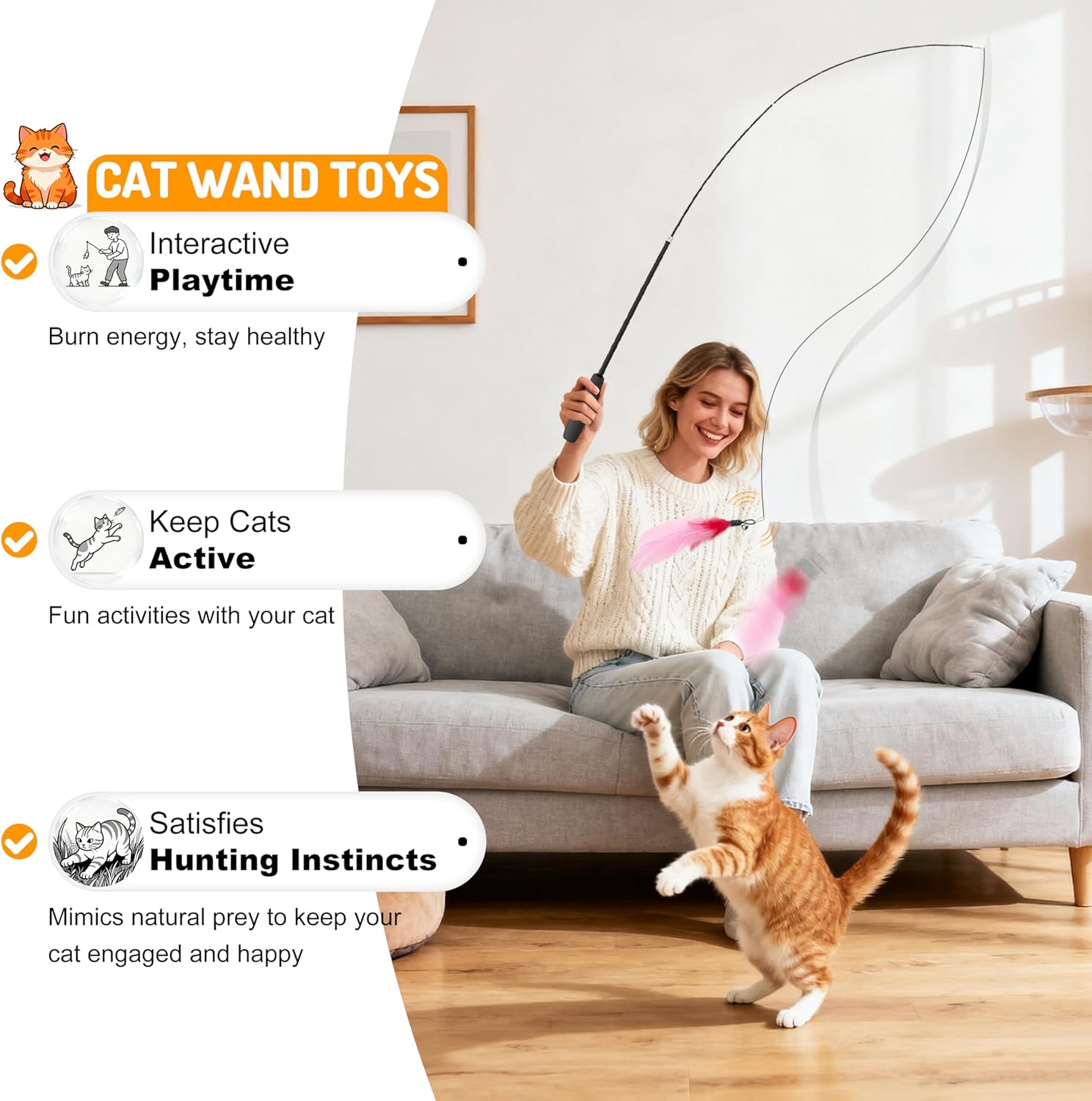 - 【Strengthen Your Bond Through Interactive Play】More than just a toy, it's a tool for connection. Daily short sessions with our wand toy provide crucial exercise for your indoor cat and, most importantly, create priceless bonding moments between you and your feline friend.