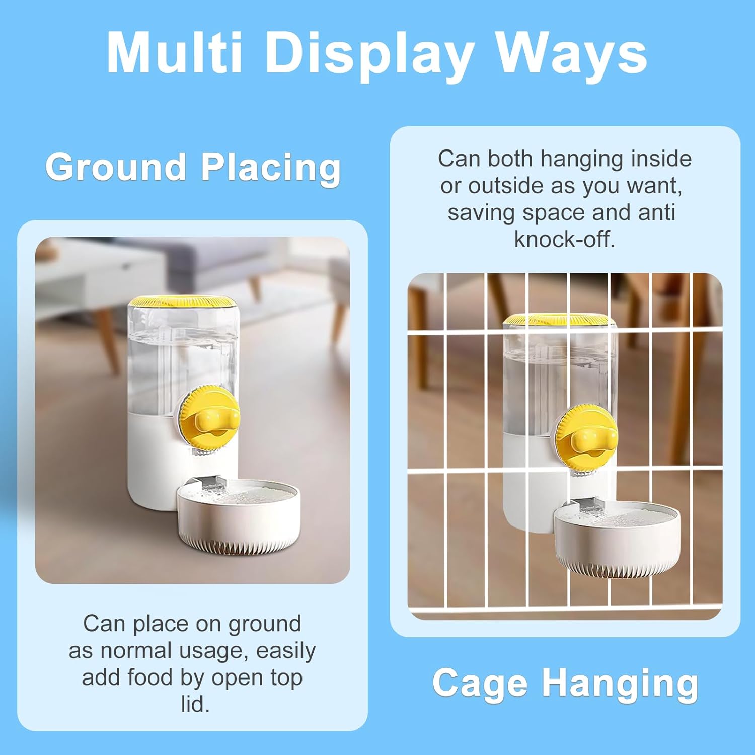 Auto Gravity Siphon Water Dispenser for Cage Hanging, 34OZ Capacity Hanging Automatic Pet Cage Waterer, Water Bowl for Cats Dogs Rabbit Ferret Chinchilla Bird Hedgehog Guinea Pig (Yellow)