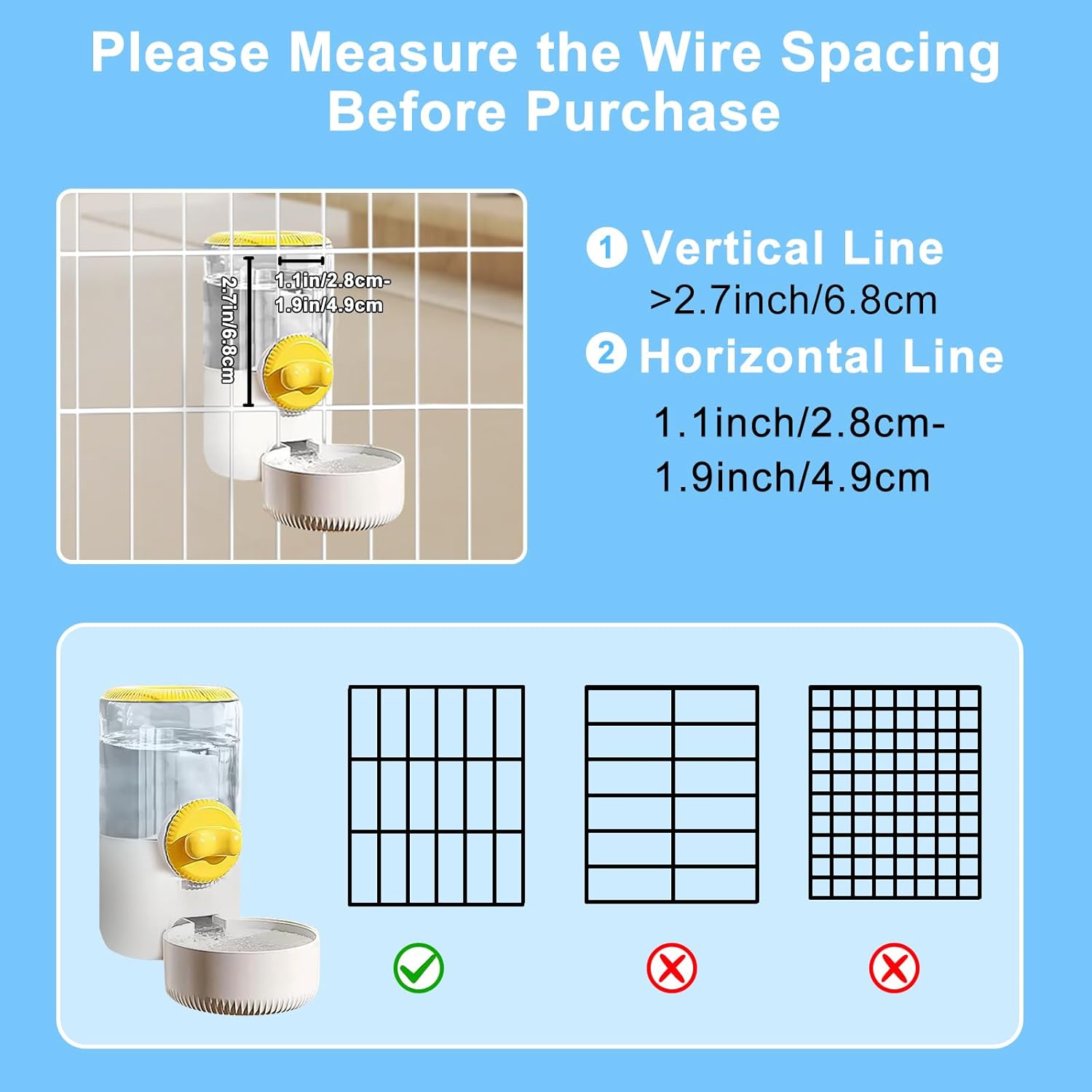 - Cage Pet Dispenser: It suits for small animals, as Cats, Dogs, Rabbit, Ferret, Chinchilla, Bird, Hedgehog, Guinea Pig and so on. Suggestions: the recommended spacing of cage wire mesh is 3-5cm (1.2-2inch), please measure your cage spacing before purchase.