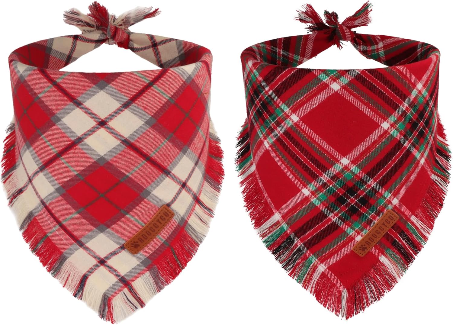 - Christmas Dog Bandanas: Stylish red plaid bandana with tassels edges, fashion and never out of date, timeless and brimming with Christmas spirit, they make your dog look attractive and lovely, perfect for the Christmas holiday.