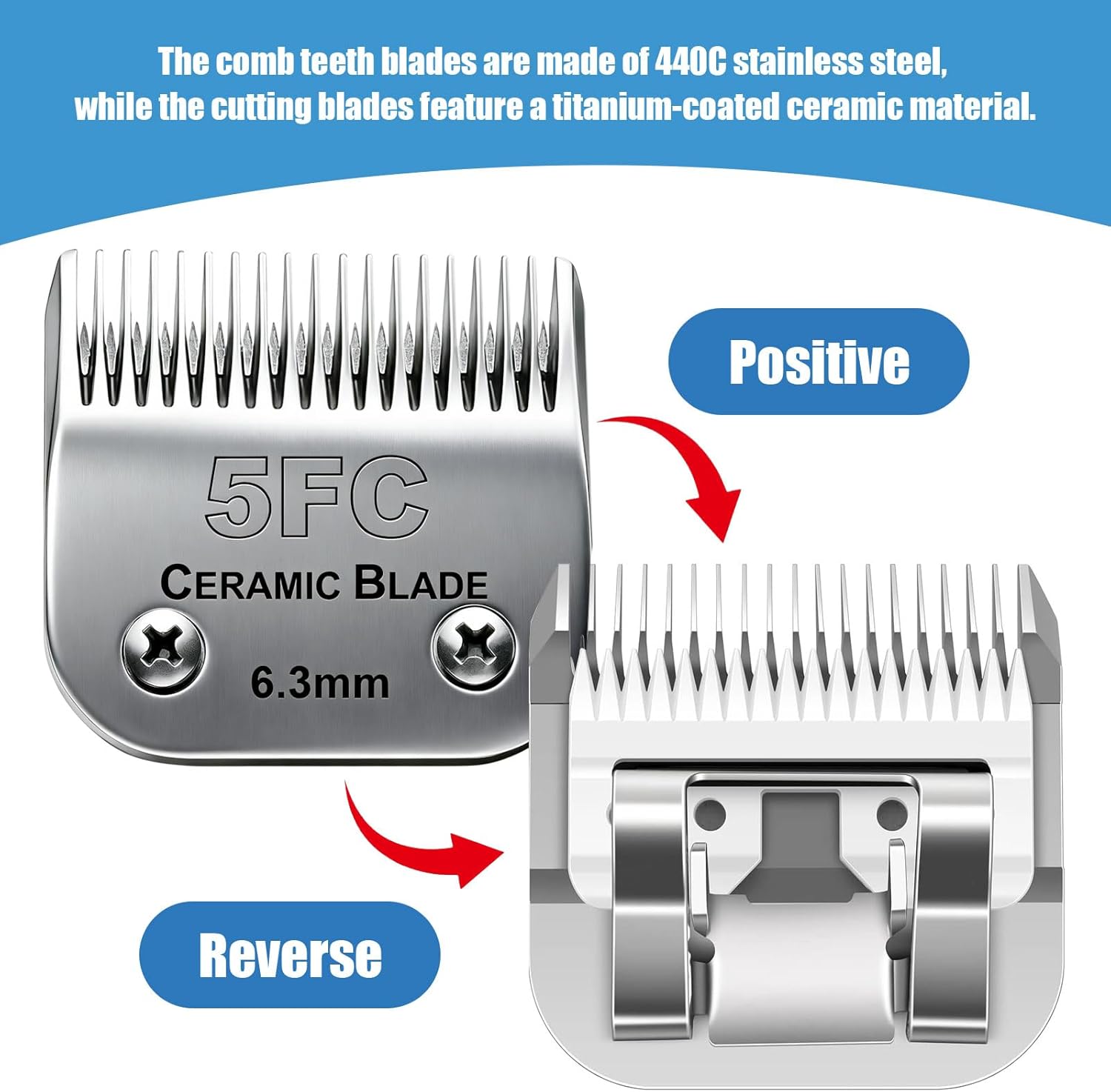 Dog Grooming Replacement Blades Compatible with Andis Dog Clipper, Dog Clipper Blades Compatible with Oster A5,Wahl KM-10 Series Dog Clipper,#5FC Blades (6.3mm)