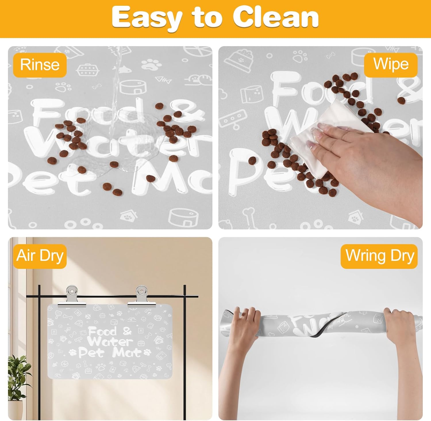- Super Absorbent & Floor No Stains: Dog food mat is absorbent and dries quickly, absorbing any spilled water and milk,protecting your floors from stains and damage. Keep your home tidy and organized, say goodbye to messy pet feeding areas, you and your pets will love it.