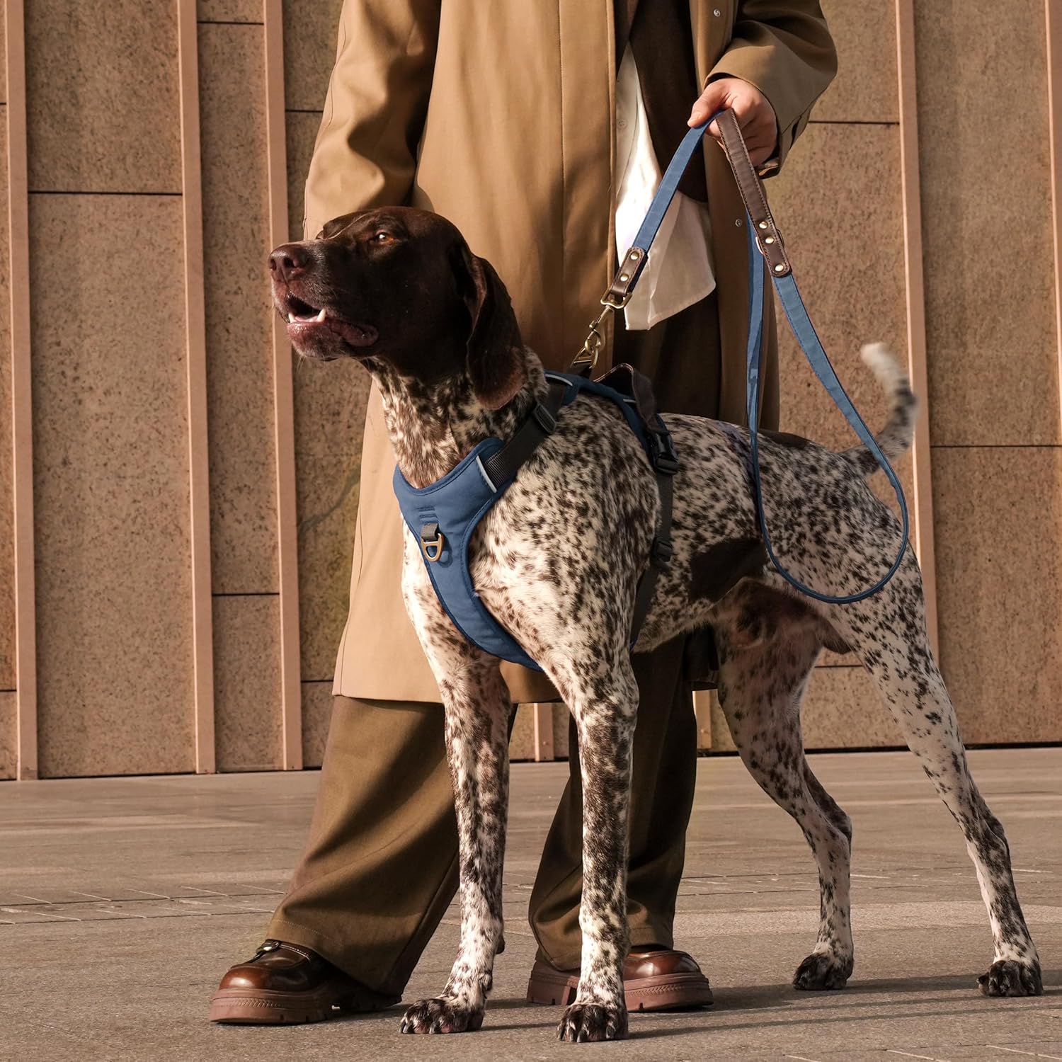 - All-in-One Adventure Ready: Ultimate gear for every journey! Each no pull harness matching leather dog leash (sold separately), ideal for daily walks,hike,outdoor stroll. Soft genuine leather handle for assisting your pet into cars or over obstacles. Reflective strips keep pets safe at night